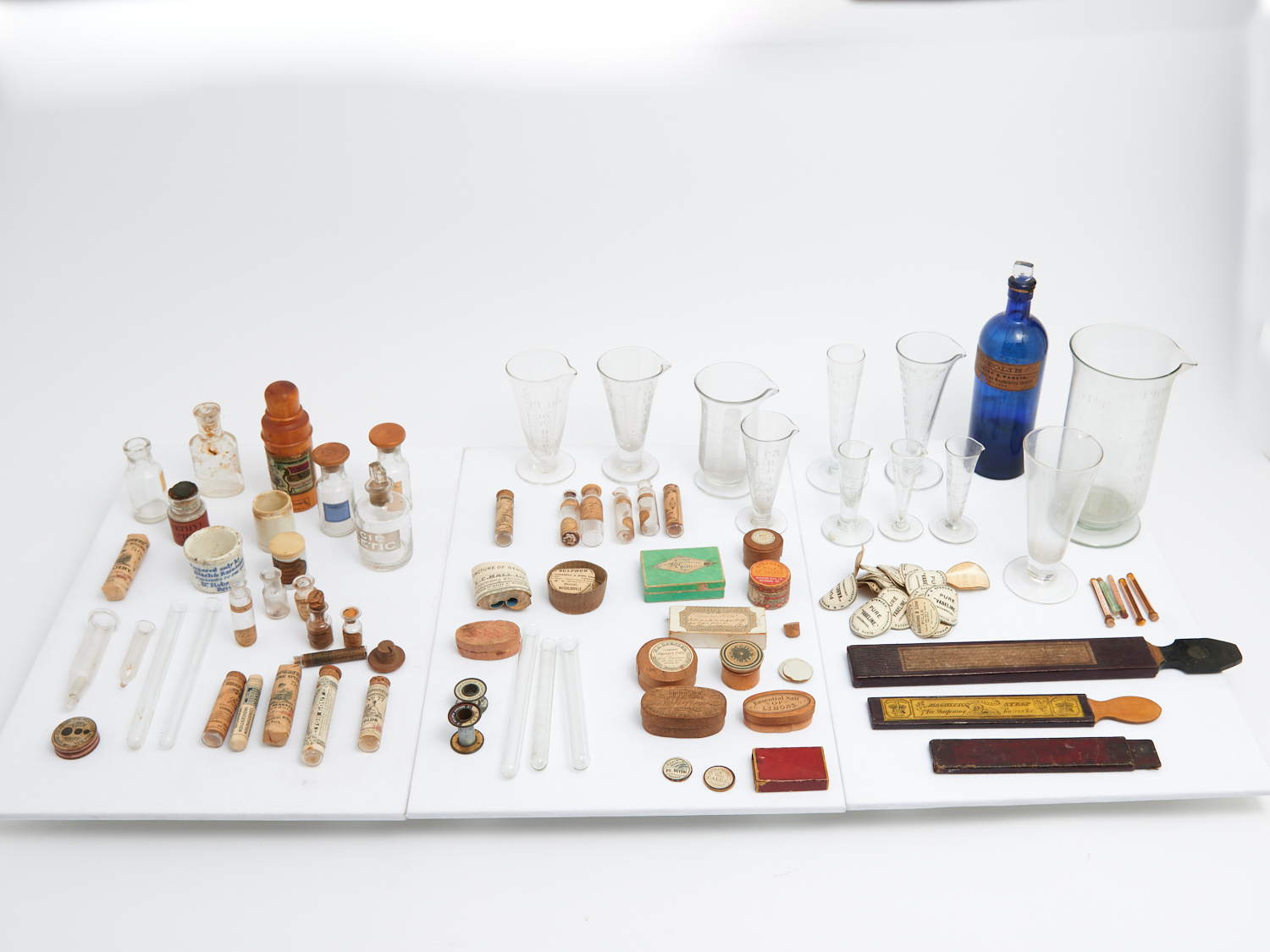 A LARGE COLLECTION OF APOTHECARY JARS, BOTTLES AND ACCESSORIES H.18CM (TALLEST), LEONARD JOEL DELIVERY SIZE: MEDIUM