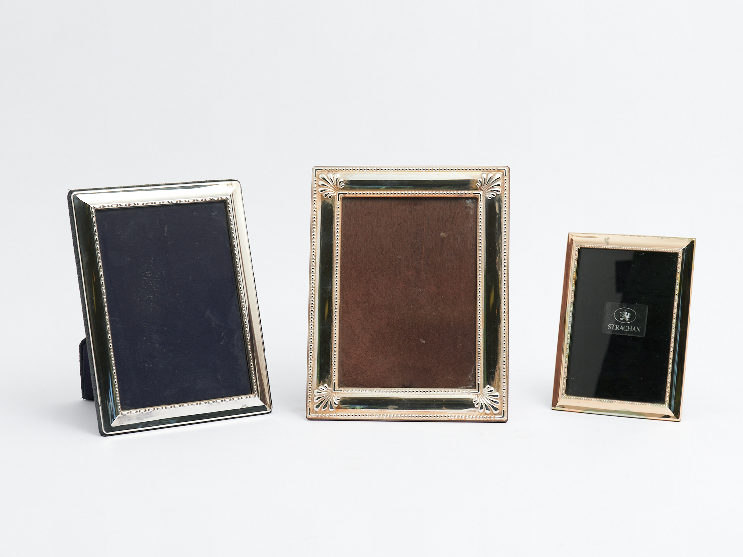 THREE SILVER PLATE PICTURE FRAMES H.22.5CM, LEONARD JOEL DELIVERY SIZE: SMALL