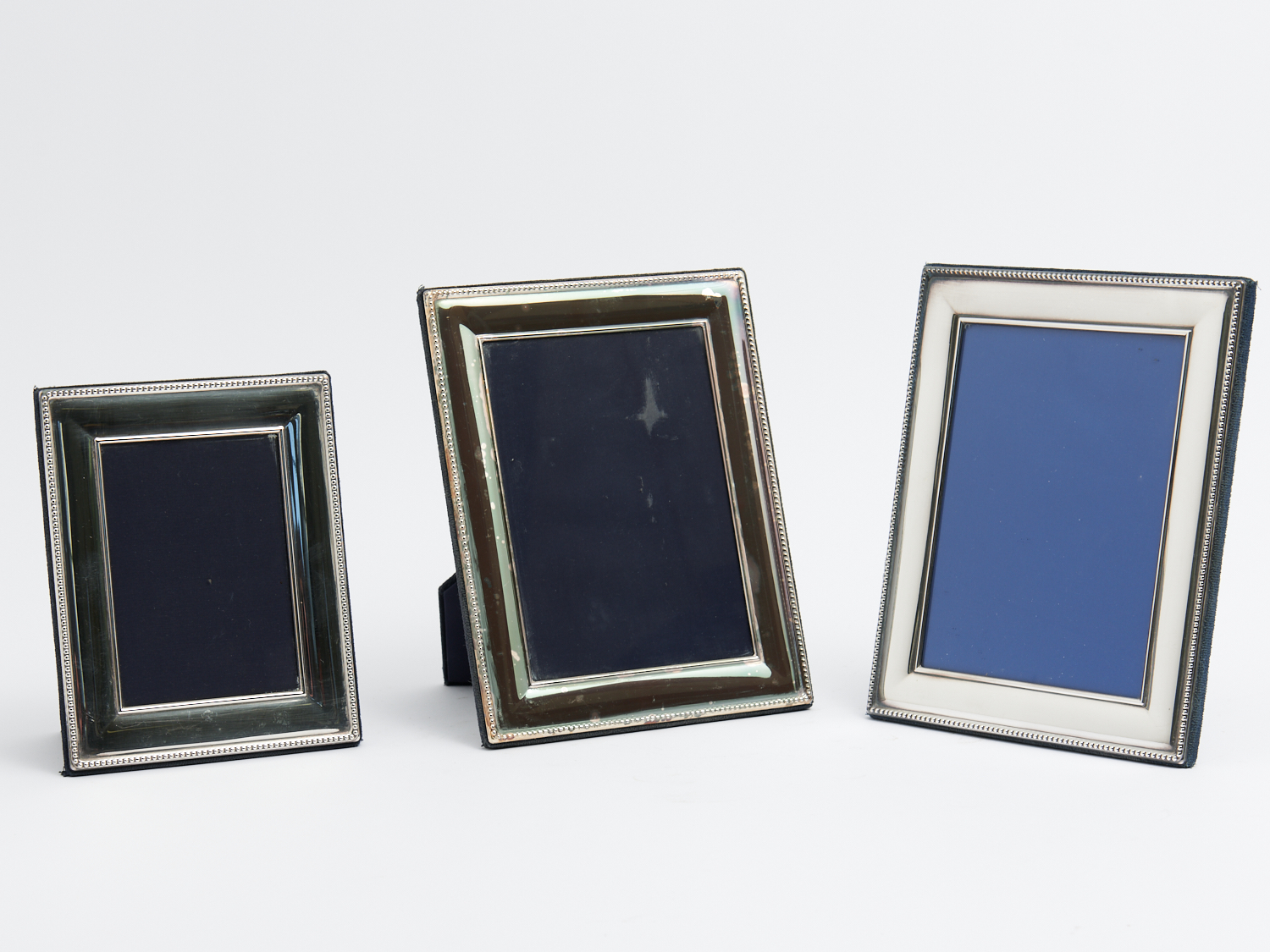 THREE SILVER PLATE PICTURE FRAMES WITH BEADED EDGES H.22.5CM, LEONARD JOEL DELIVERY SIZE: SMALL