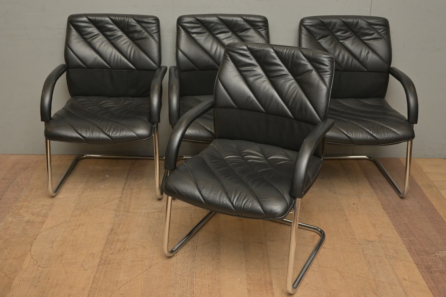 FOUR AUSTRIAN LEATHER CANTILEVER CHAIRS ATTRIBUTED TO EUGEN SCHMIDT (88H X 60W X 65D CM) (LEONARD JOEL DELIVERY SIZE: X-LARGE)