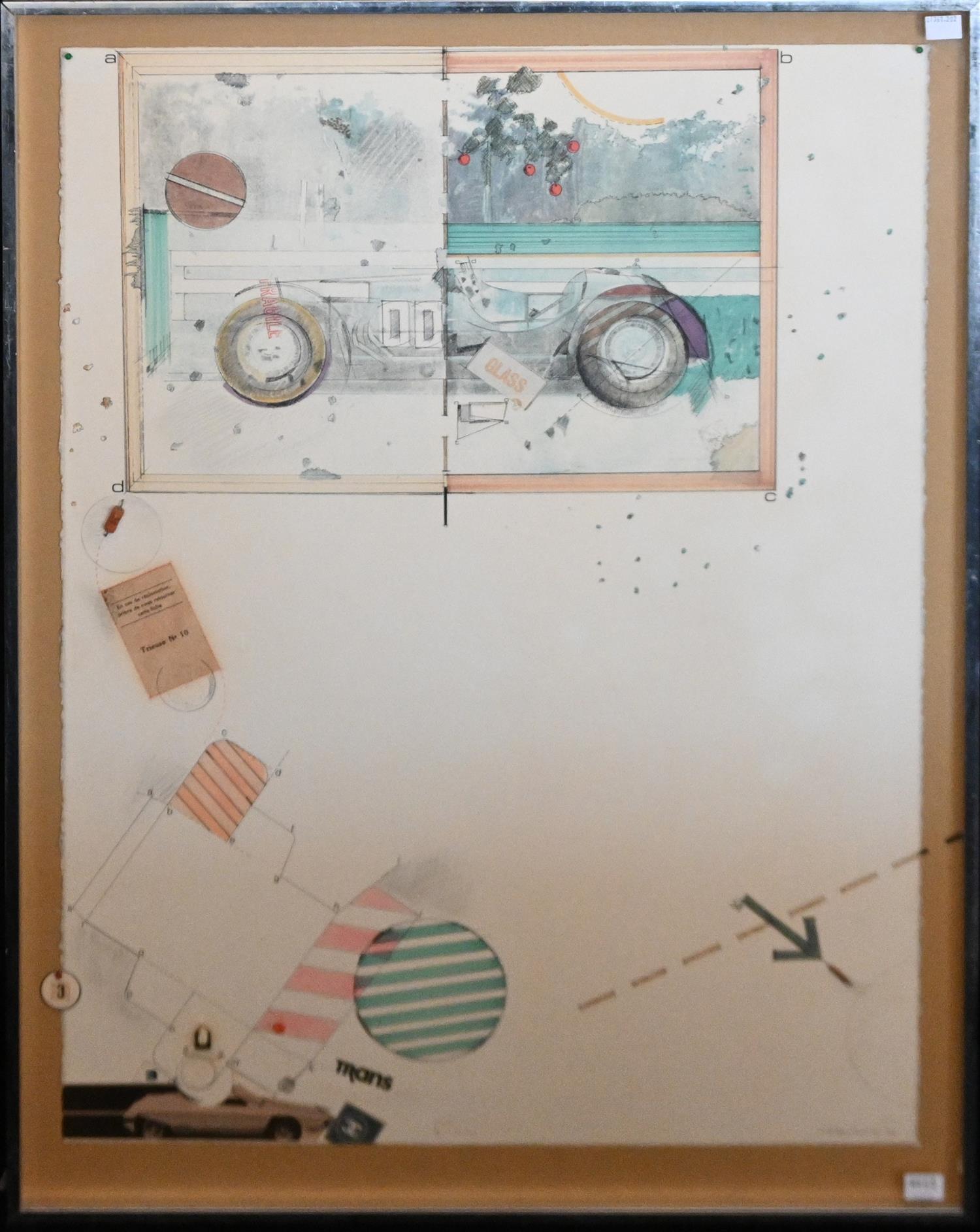 § KEN REINHARD, GLASS CHANNEL 1979, MIXED MEDIA ON PAPER, SIGNED AND DATED LOWER RIGHT, TITLED VERSO, 76 X 56CM (SHEET), FRAME SIZE: 84 X 64CM