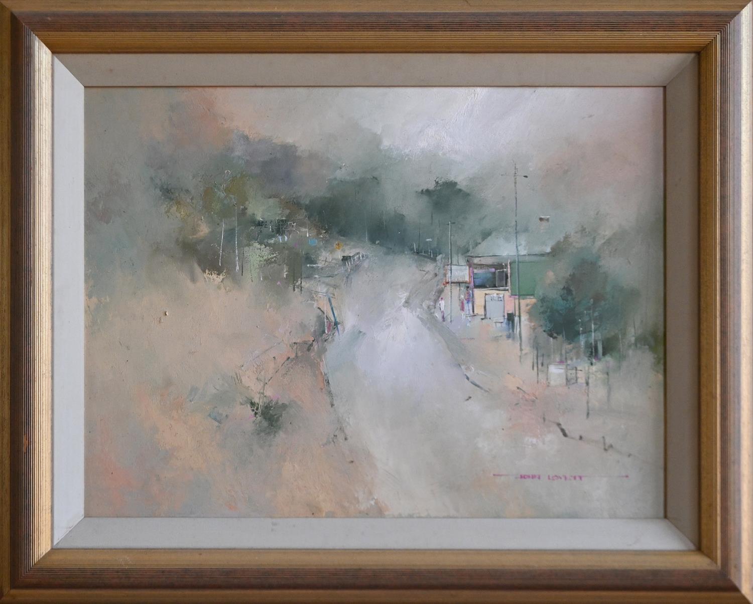 LOUIS JAMES, MOTEL INSET 1971, OIL ON BOARD, SIGNED AND DATED LOWER LEFT, TITLED VERSO, 74.5 X 62CM, FRAME SIZE: 79 X 66CM