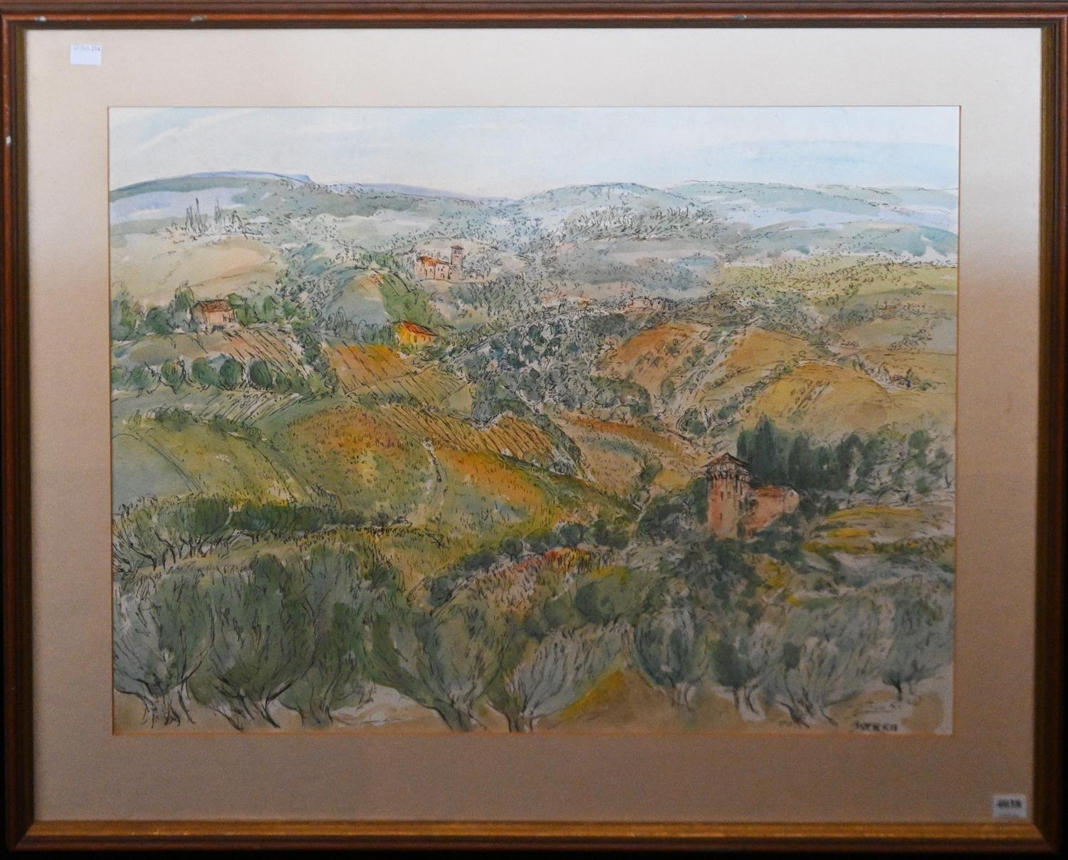 Work in overall good condition. Surface dust and dirt to glass, frame and mount, foreign matter residue seen to frame.