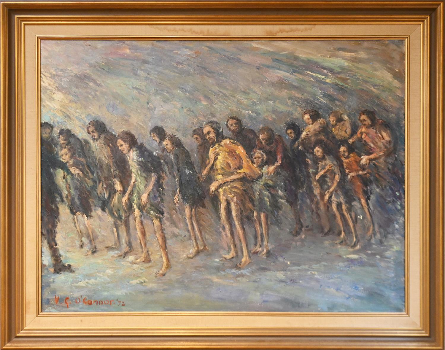 VIC O'CONNOR, FROM THE EXODUS SERIES 1972, OIL ON CANVAS, SIGNED AND DATED LOWER LEFT, 90 X 120.5CM, FRAME SIZE: 115 X 145.5CM