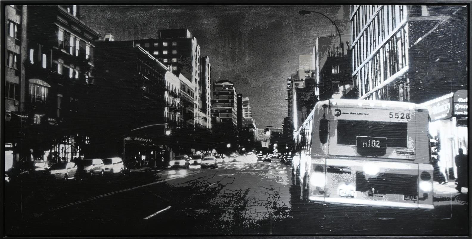 § KIRPY, (STREET SCENE) 2013, SYNTHETIC POLYMER PAINT AND AEROSOL ON CANVAS, SIGNED AND DATED VERSO, 59 X 119CM, FRAME SIZE: 62 X 122CM