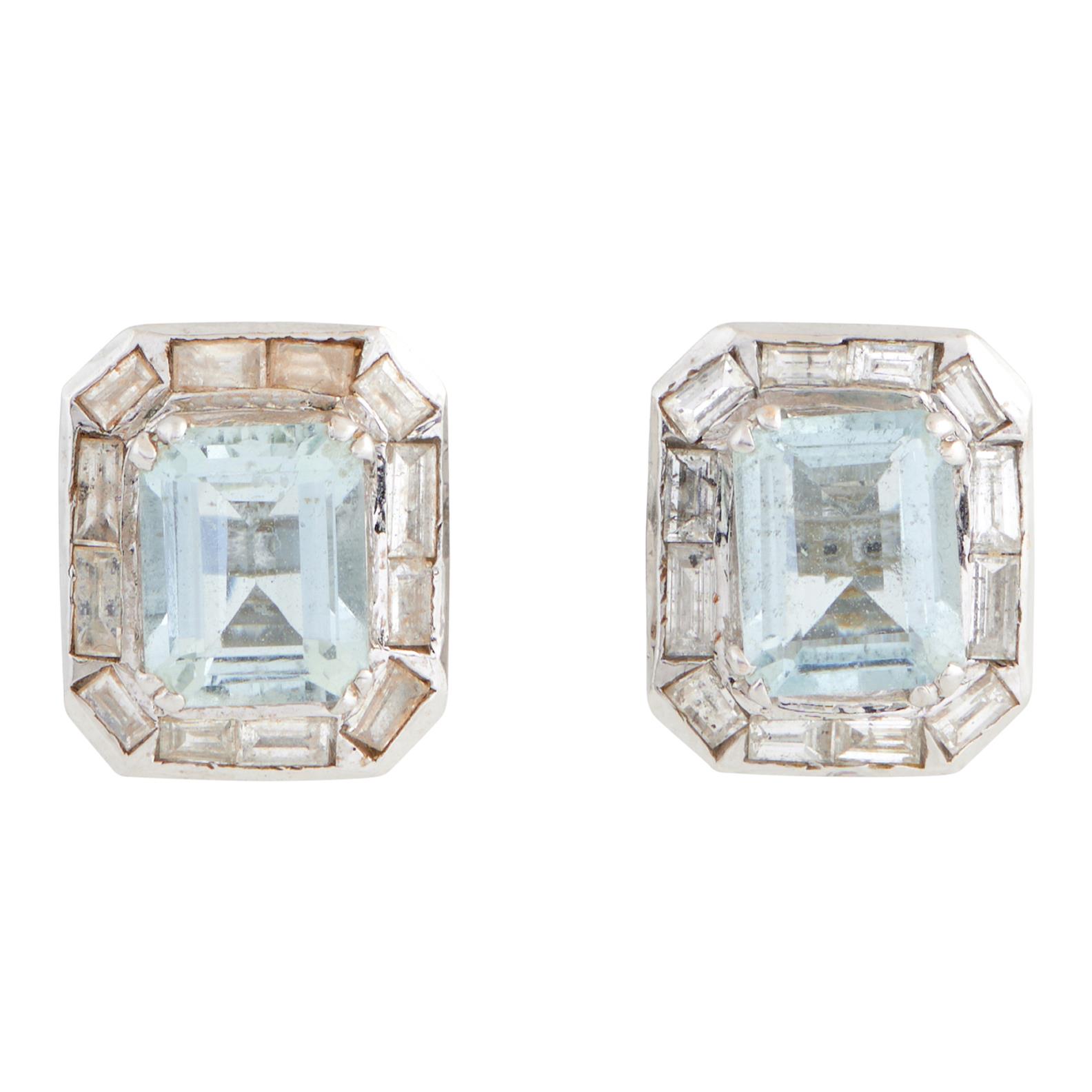 PAIR OF 14CT WHITE GOLD, AQUAMARINE AND DIAMOND EARRINGS