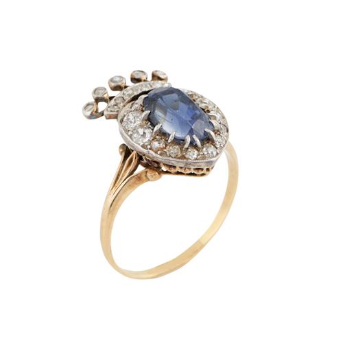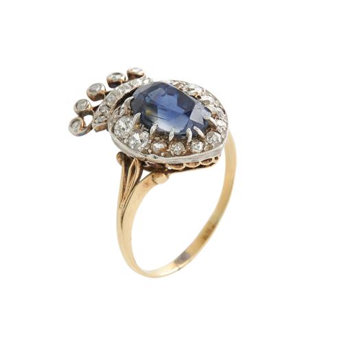 18CT GOLD, PLATINUM, SAPPHIRE AND DIAMOND RING