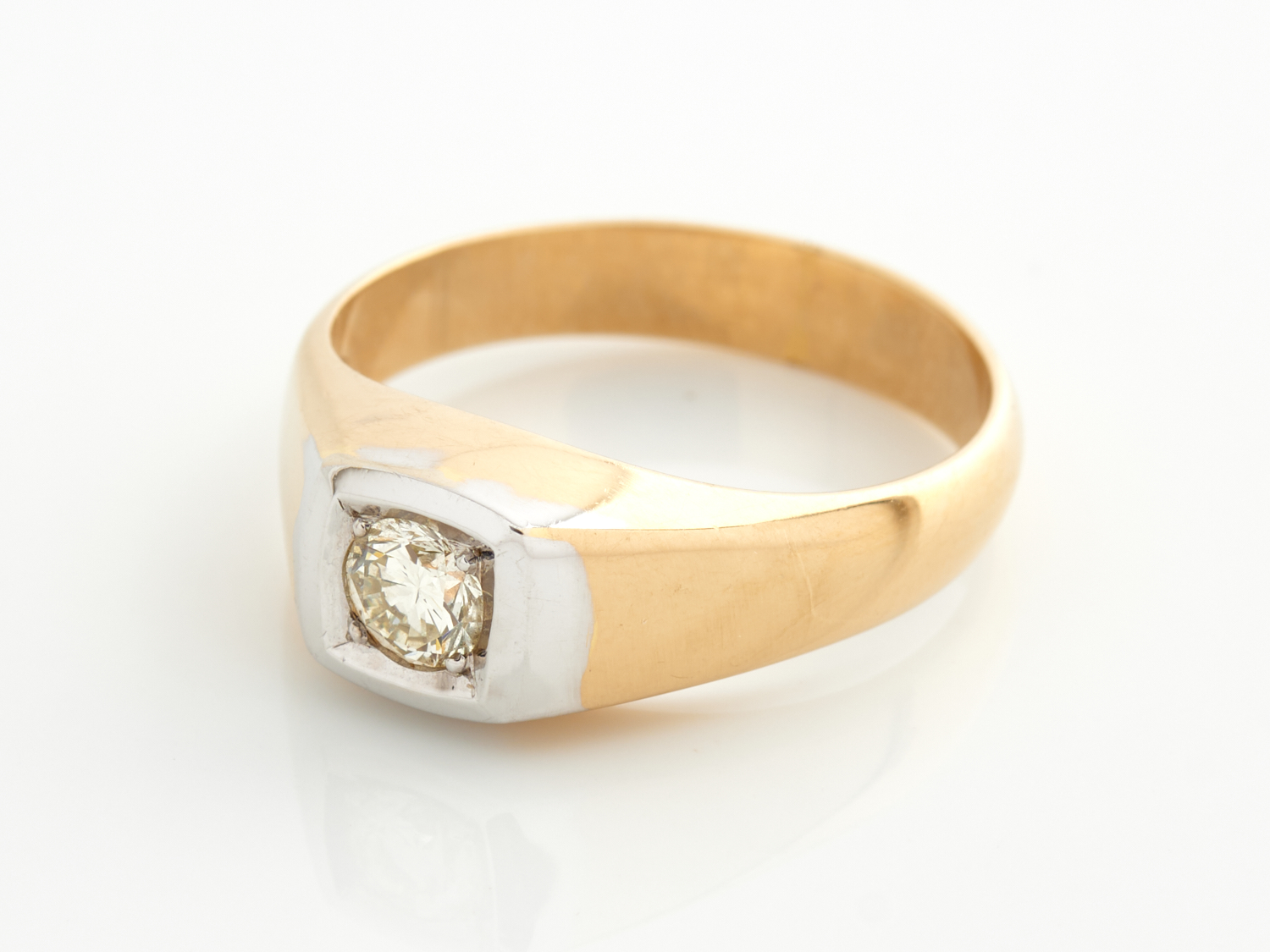 A DIAMOND SET GENTS RING IN 18CT GOLD, THE DIAMOND WEIGHING APPOXIMATELY 0.30CTS, SIZE Q, 7.9GMS