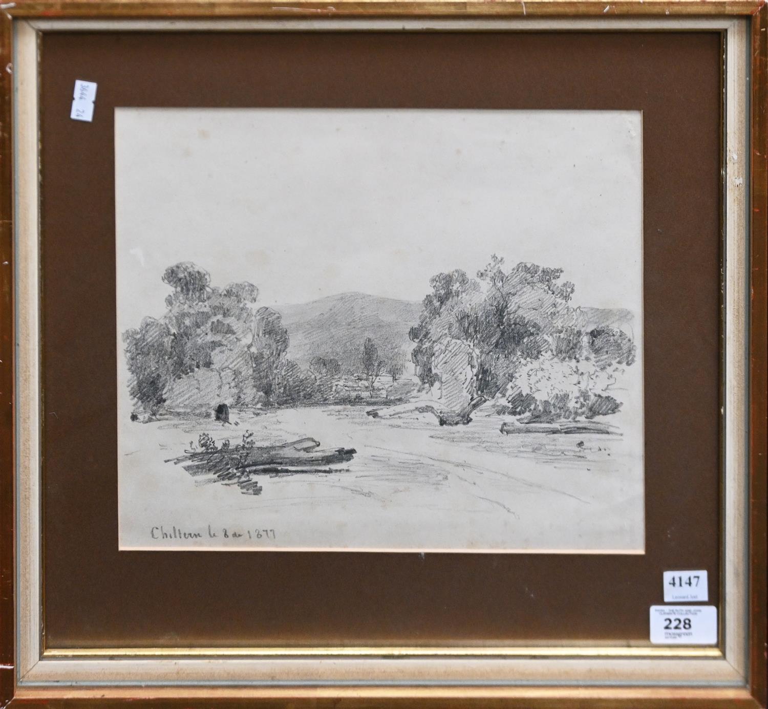 LOUIS BUVELOT, CHILTERN VICTORIA 1877, CHARCOAL AND PENCIL, TITLED AND DATED LOWER LEFT, 25 X 30CM