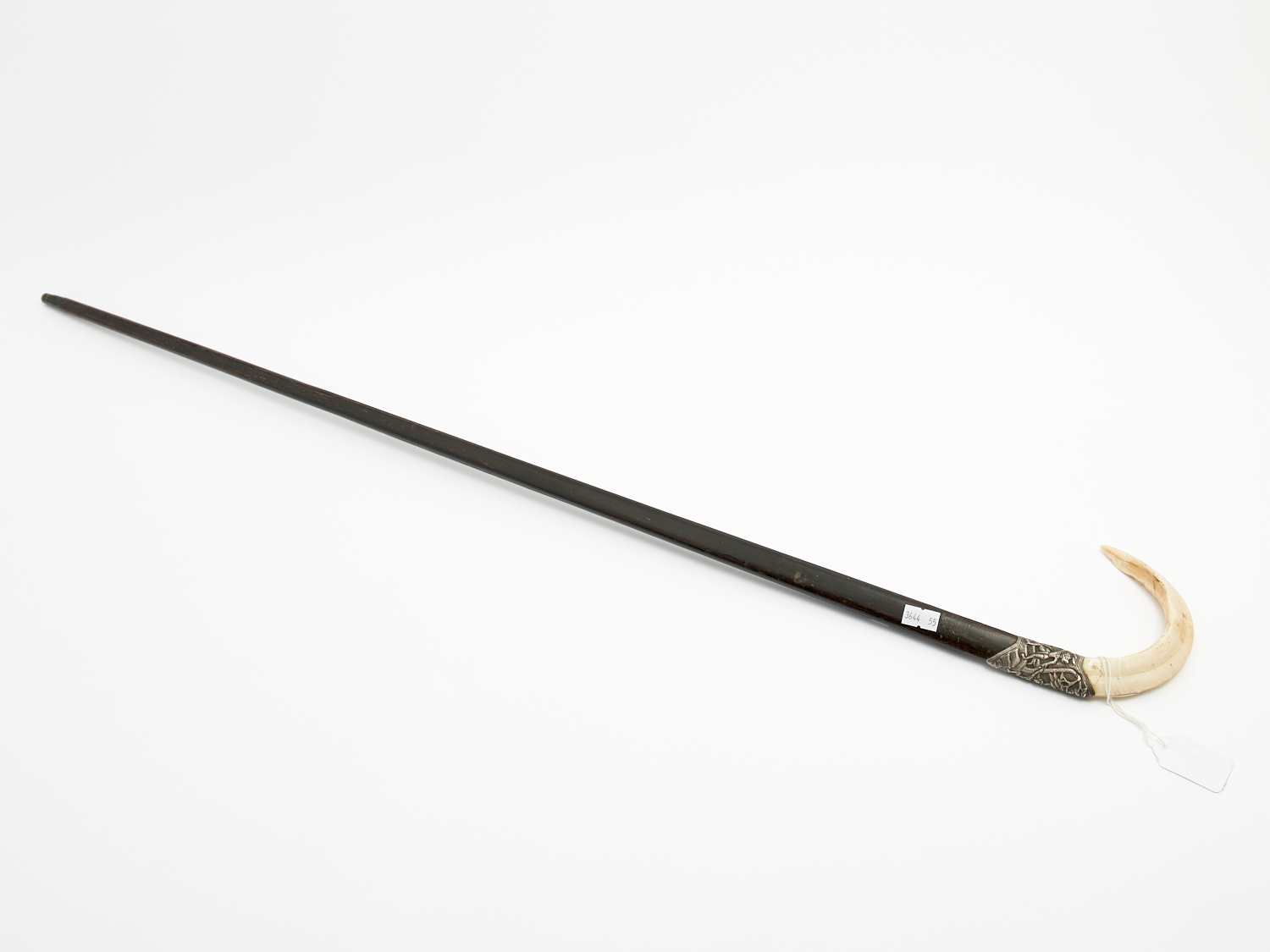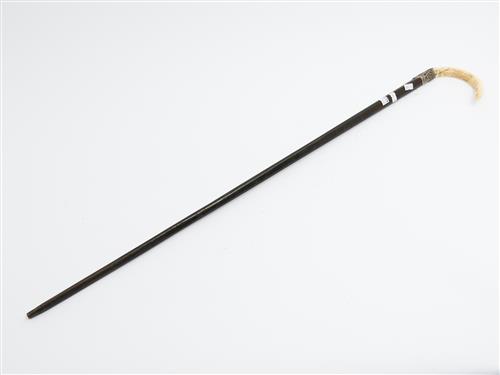 A WALKING STICK WITH EMBOSSED SILVER MOUNTING AND TUSK HANDLE, COLONIAL, 19TH CENTURY L.95CM, LEONARD JOEL DELIVERY SIZE: SMALL