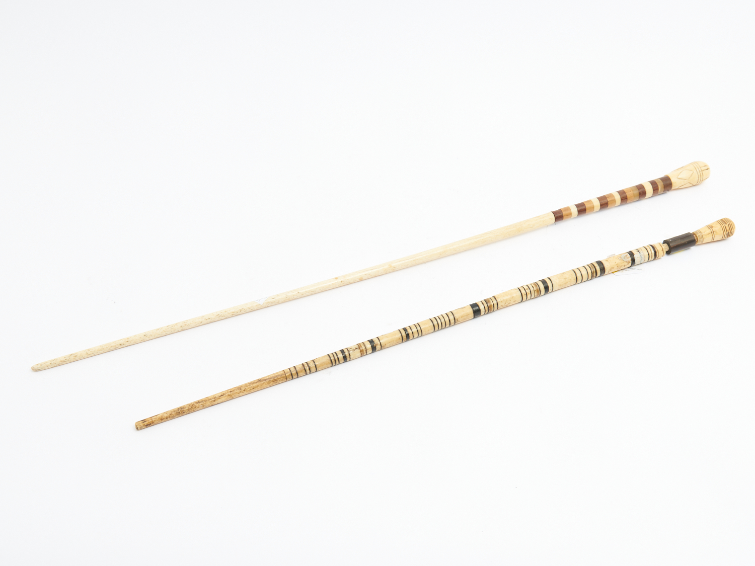 TWO 19TH CENTURY WHALE BONE CANES INCLUDING ONE WITH BALEEN FROM THE MARITIME COLLECTION OF DESMOND ADCOCK (A/F) L.83.5CM, LEONARD JOEL DELIVERY SIZE: MEDIUM