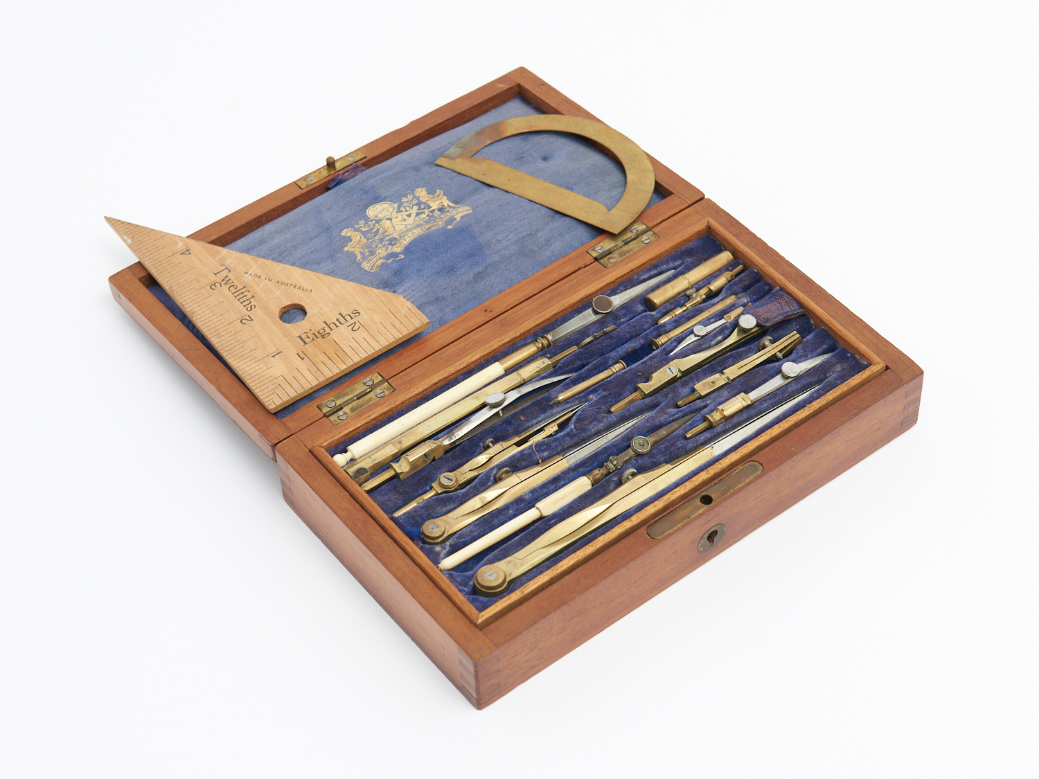 AN ANTIQUE DRAWING SET W.21.5CM, LEONARD JOEL DELIVERY SIZE: SMALL