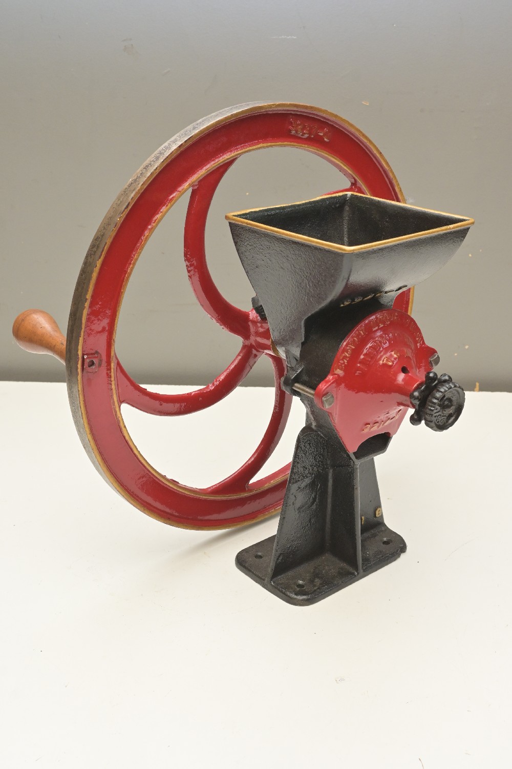 AN AMERICAN ANTIQUE CAST IRON CORN GRISTER (42H X 41W X 34D CM) (LEONARD JOEL DELIVERY SIZE: LARGE)