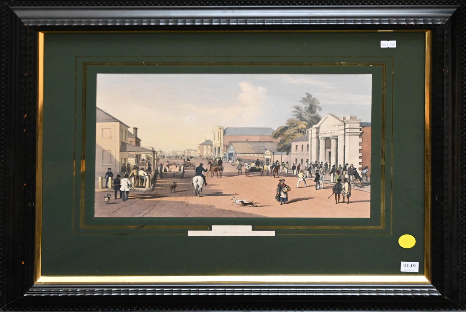 GEORGE FRENCH ANGAS & S.T. GILL, HINDLEY STREET FROM THE CORNER KING WILLIAMS STREET, ADELAIDE, COLOURED LITHOGRAPH, 26 X 39CM, FRAME SIZE: 57 X 67.5CM