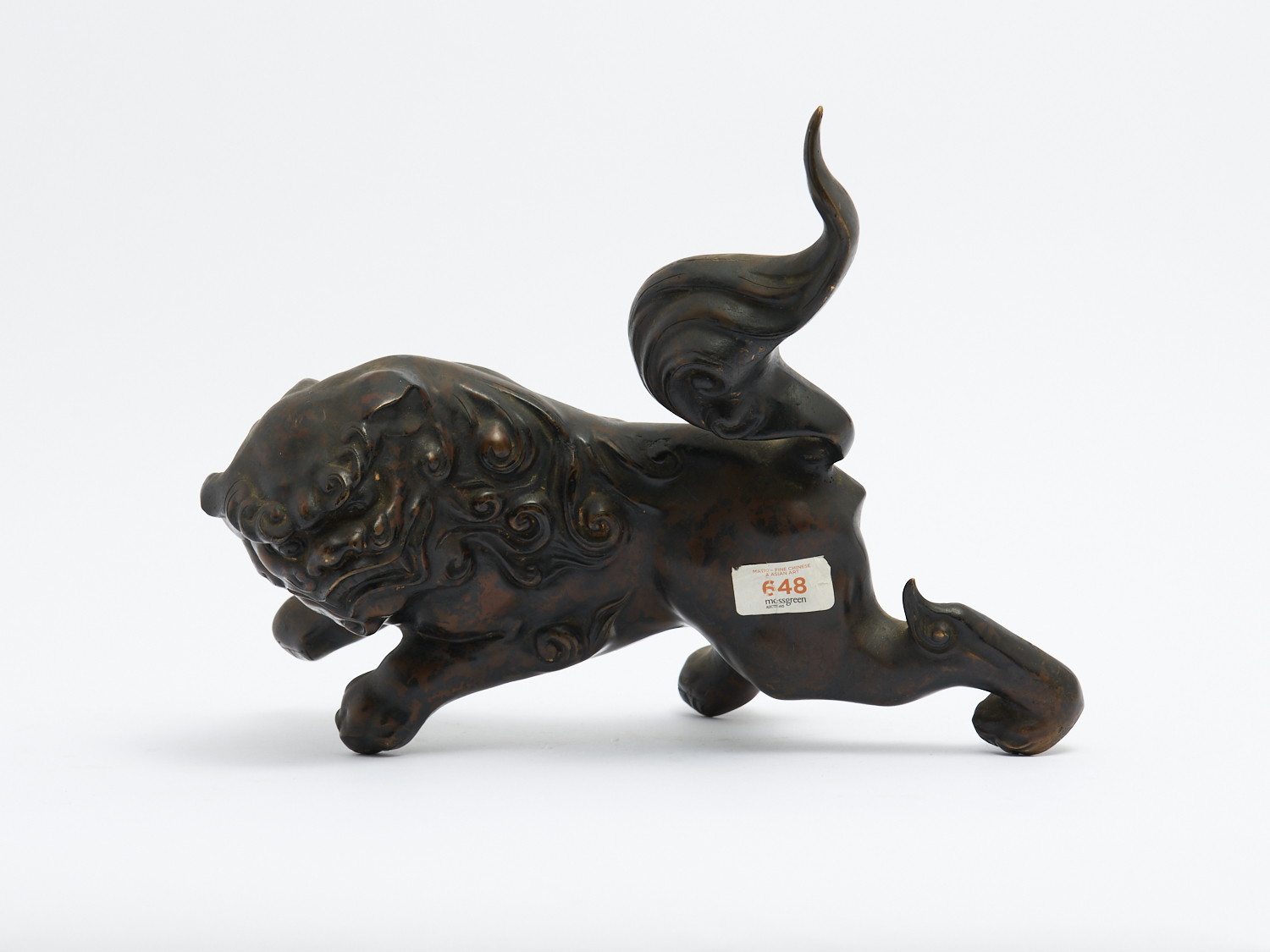 A CHINESE BRONZE TEMPLE DOG, QING DYNASTY, 19TH CENTURY (A/F) L.33CM, LEONARD JOEL DELIVERY SIZE: MEDIUM