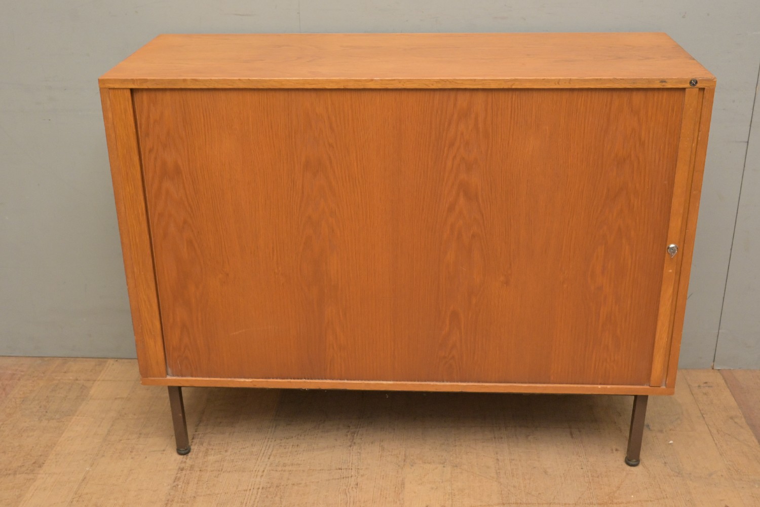 A DANISH OAK TAMBOUR STORAGE CABINET (A/F) (92H X 120W X 45D CM) (PLEASE NOTE THIS HEAVY ITEM MUST BE REMOVED BY CARRIERS AT THE CUSTOMER'S EXPENSE. LEONARD JOEL STAFF CANNOT ASSIST CARRYING THIS ITEM) (LARGE ITEM)