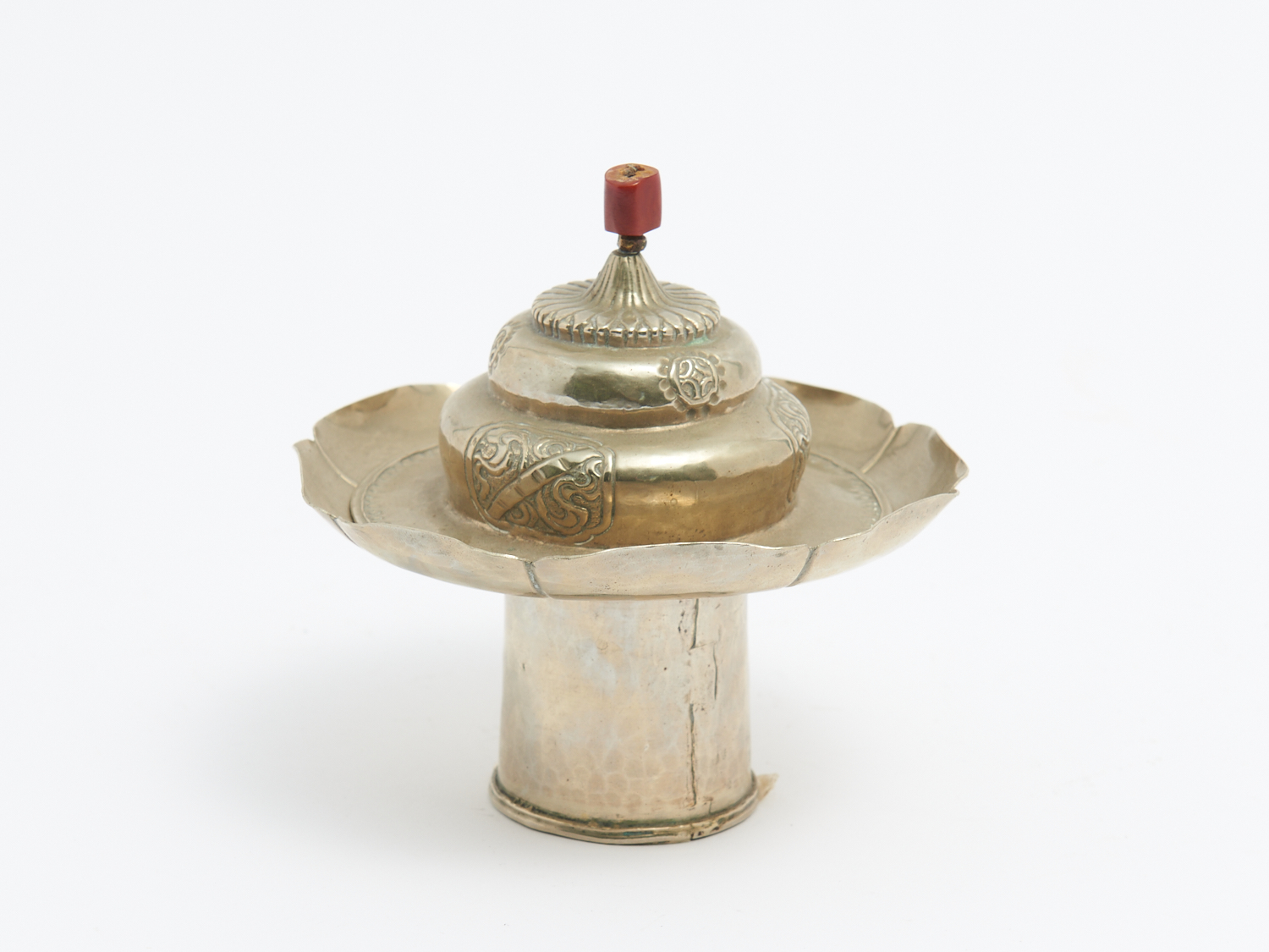 A TIBETAN SILVER TEA STAND WITH LID (A/F) 138G H.12CM, LEONARD JOEL DELIVERY SIZE: SMALL