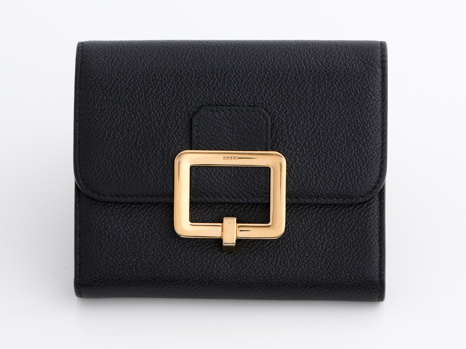 BALLY, A WALLET STYLED IN PEBBLED LEATHER WITH GOLD TONE METAL HARDWARE AND PRESS STUD CLOSURE, 11 X 14 X 3CM