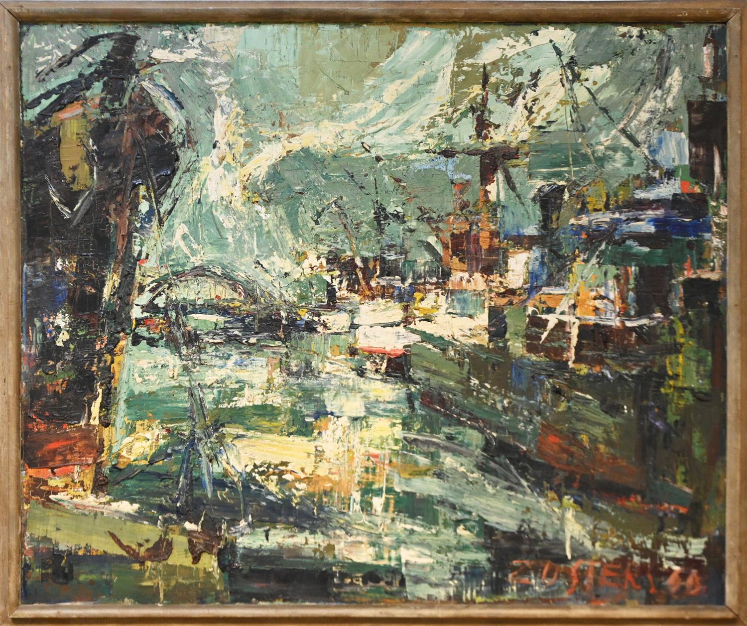REINIS ZUSTERS, SYDNEY HARBOUR, 1960, OIL ON BOARD, SIGNED AND DATED LOWER RIGHT, 76.5 X 91.5CM, FRAME SIZE: 82.5 X 97.5CM