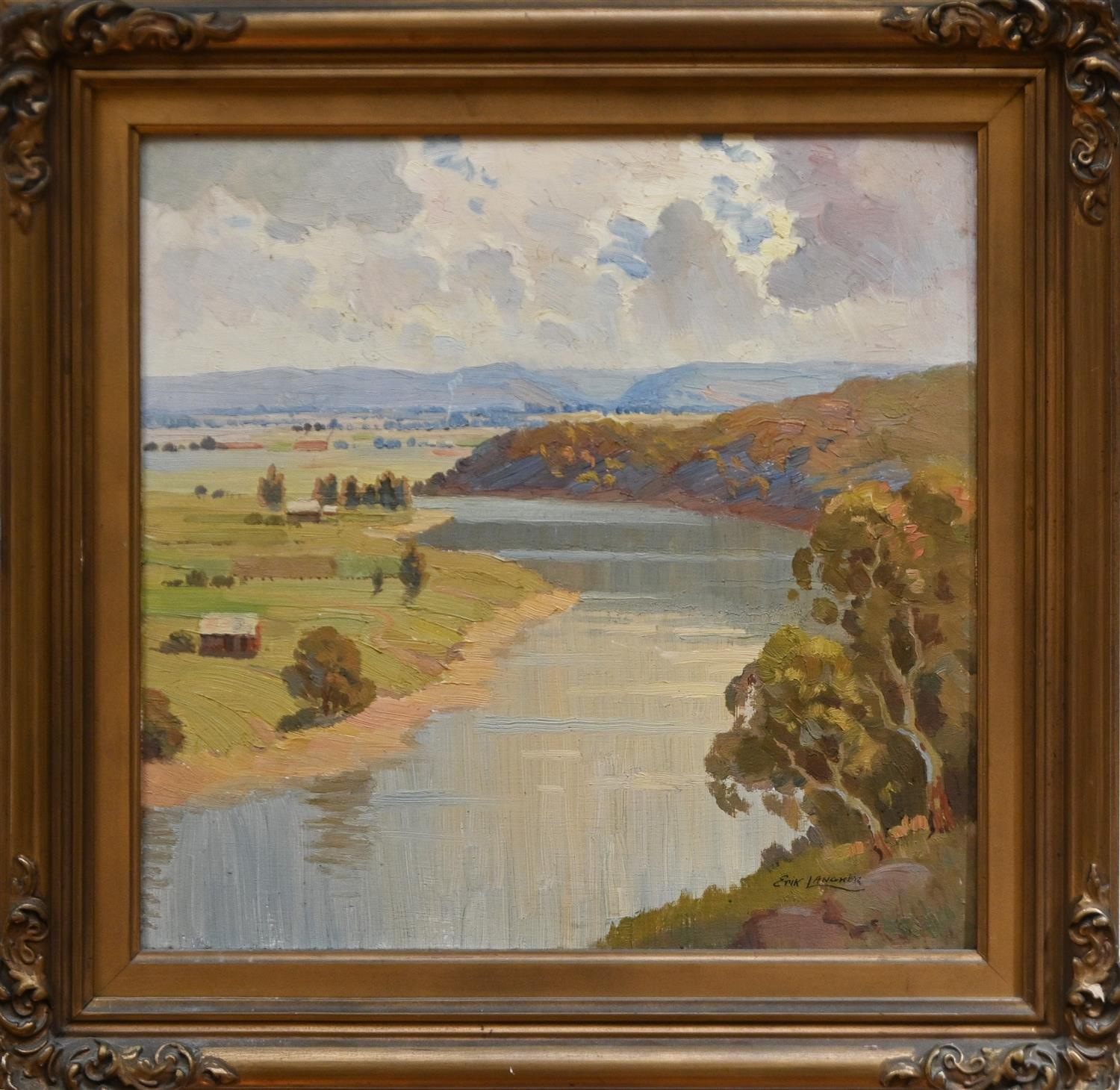 ERIK LANGKER, (RIVER LANDSCAPE), OIL ON CANVAS, SIGNED LOWER RIGHT, 34 X 45CM, FRAME SIZE: 47 X 47CM