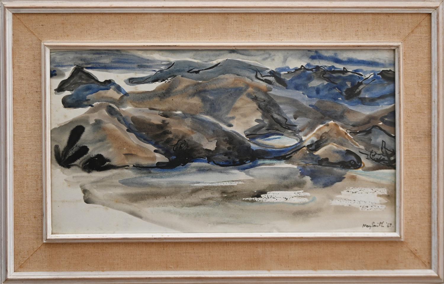 MAY SMITH, (UNTITLED) 1967, MIXED MEDIA ON PAPER, SIGNED AND DATED LOWER RIGHT, 27 X 50.5CM, FRAME SIZE: 43 X 66CM