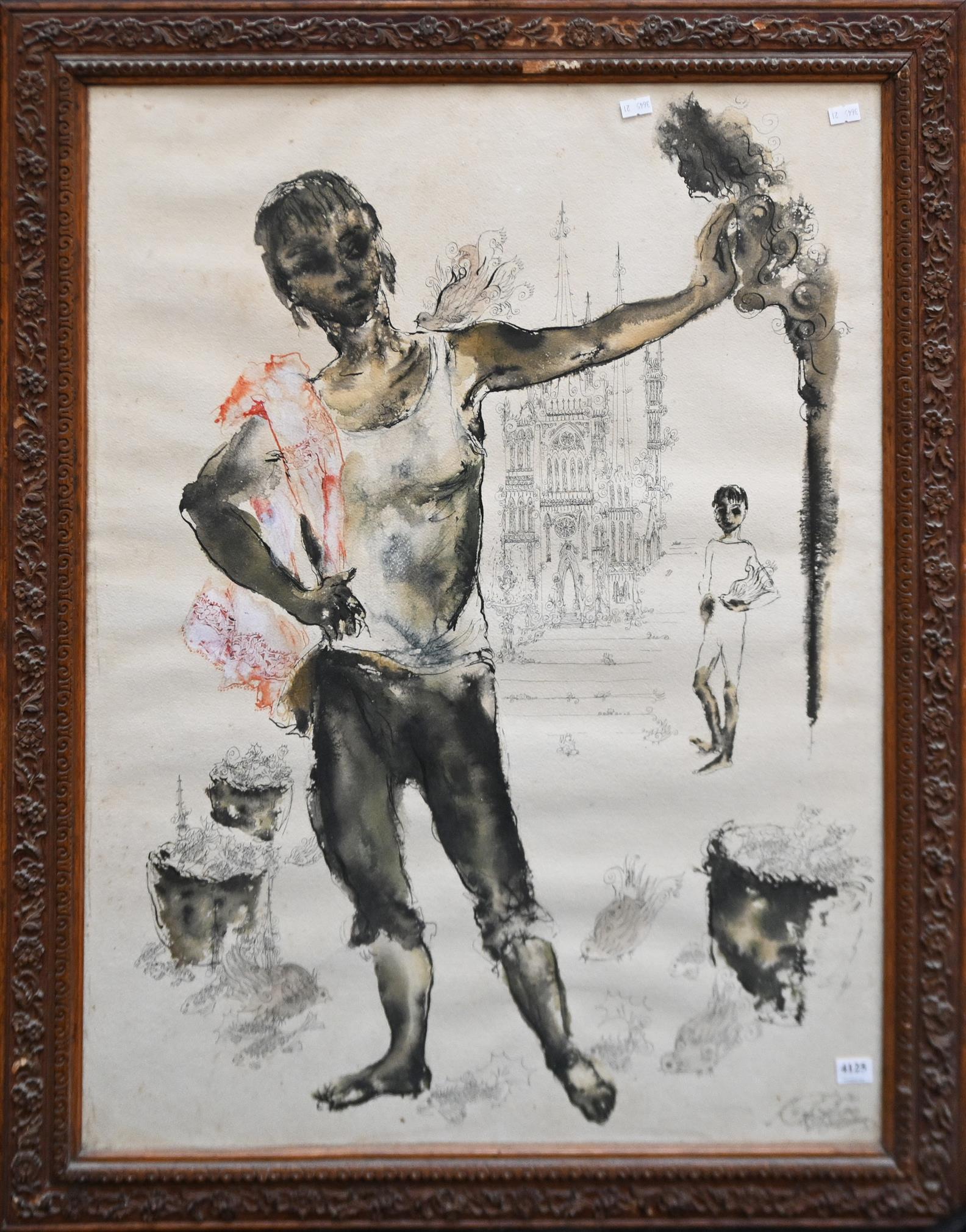 MARY TALBOT, (FIGURES) 1958, MIXED MEDIA ON PAPER, SIGNED AND DATED LOWER RIGHT, 77.5 X 57CM, FRAME SIZE: 90 X 69.5CM