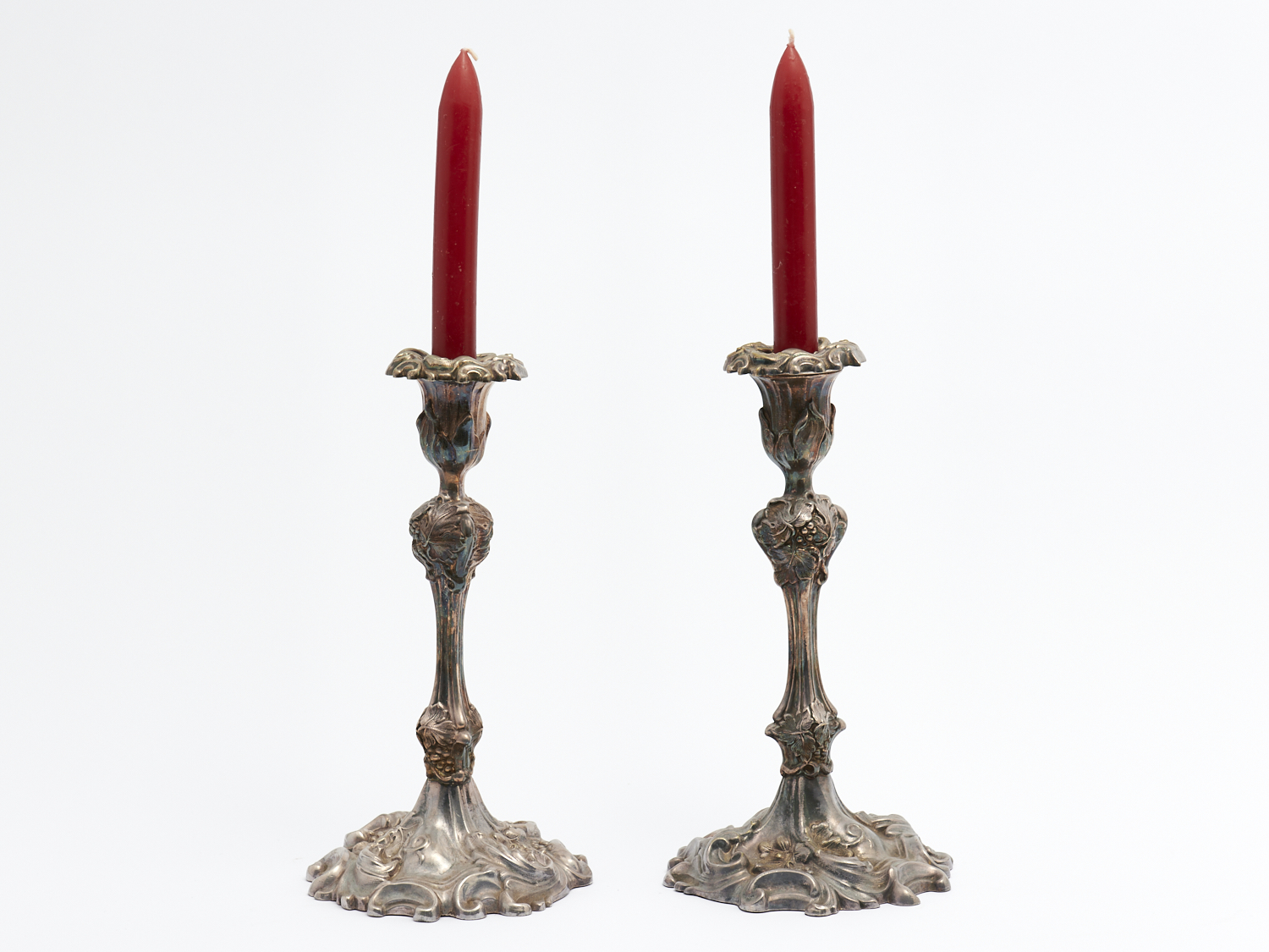 A PAIR OF SILVER PLATE CANDELSTICKS H.25.5CM, LEONARD JOEL DELIVERY SIZE: MEDIUM
