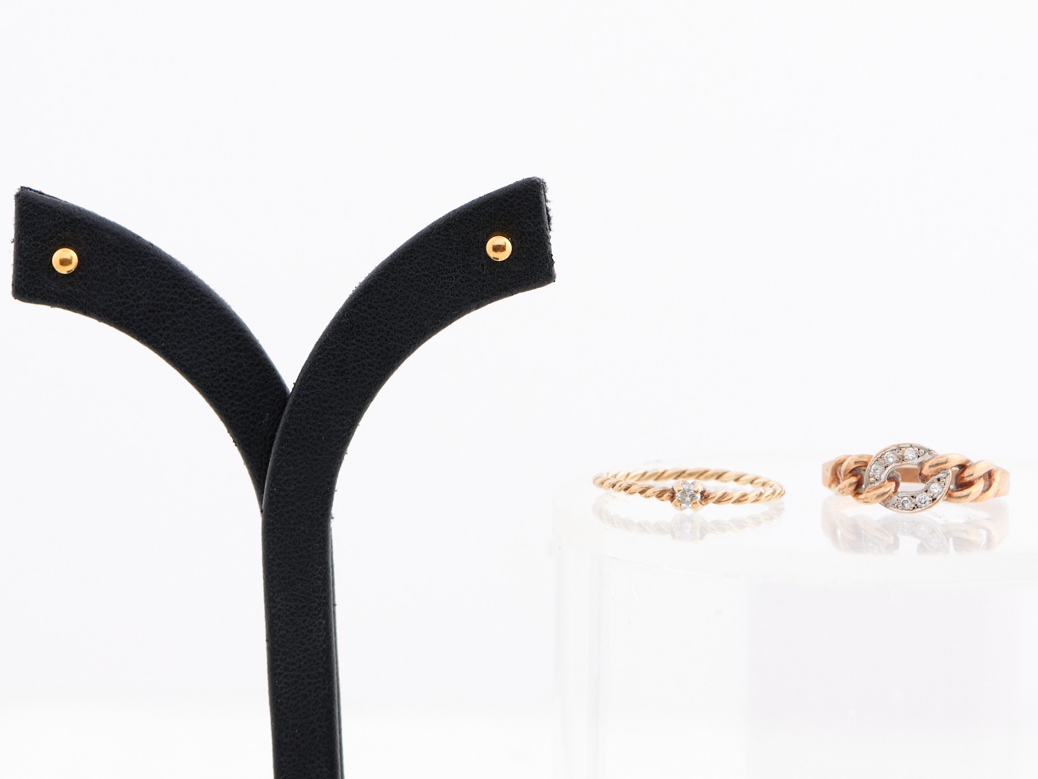 TWO DIAMOND SET RINGS IN 9CT GOLD, SIZE O, 3.2GMS, ALONG WITH A PAIR OF STUDS IN GOLD PLATE