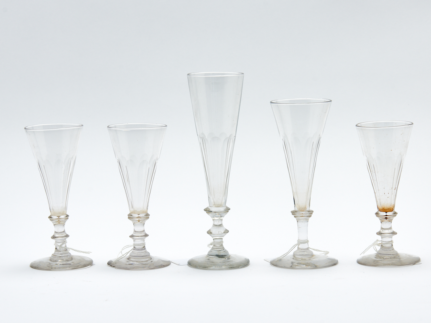 A GROUP OF 19TH CENTURY GLASS FLUTES AND ALE GLASSES H.19CM (TALLEST), LEONARD JOEL DELIVERY SIZE: MEDIUM