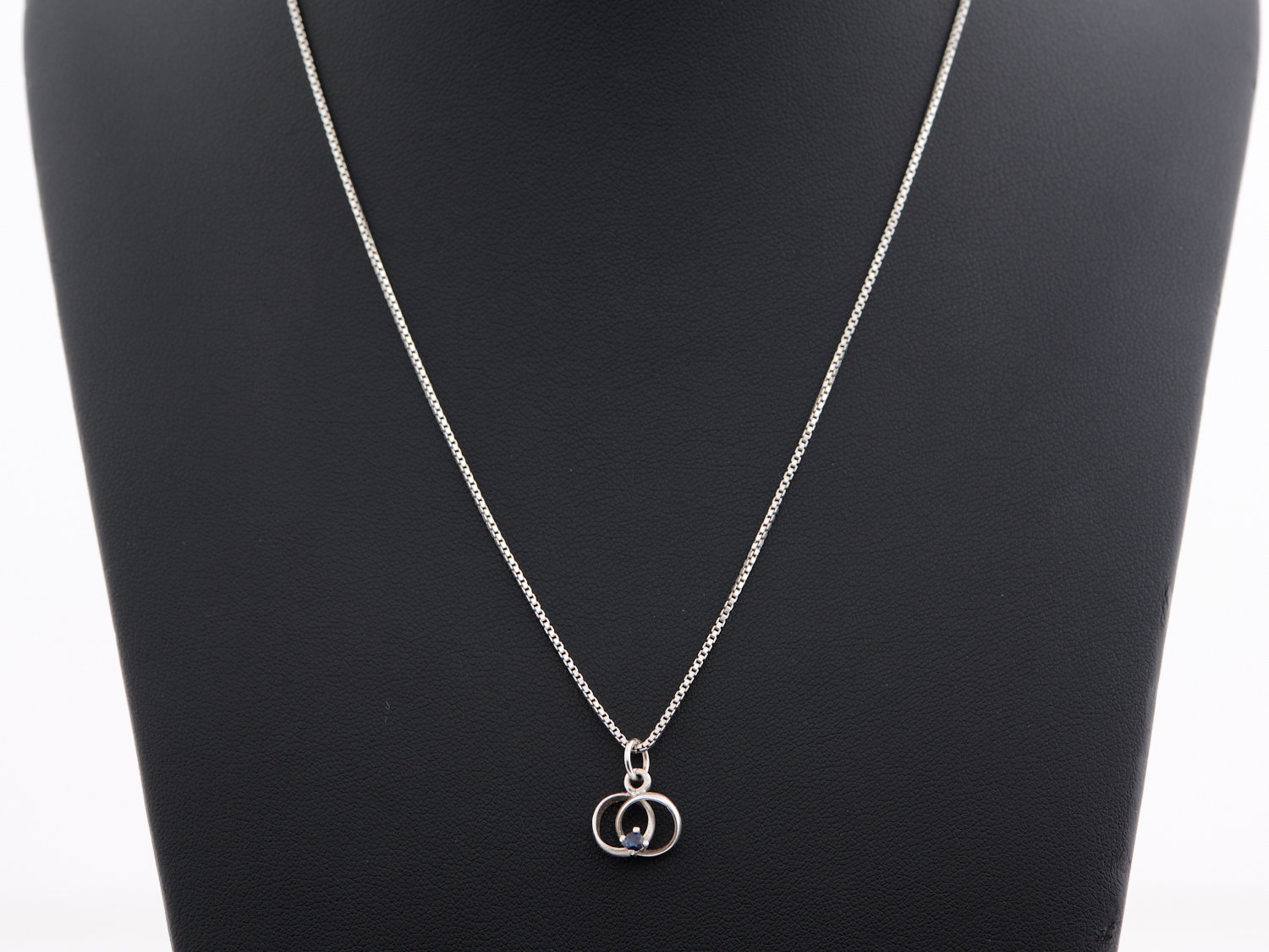 A SAPPHIRE SET PENDANT IN 9CT WHITE GOLD, 4.07GMS, 460MM