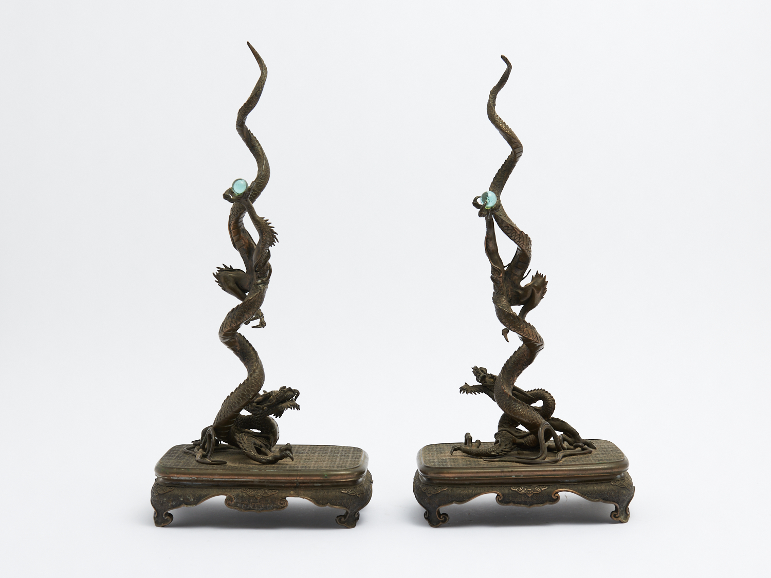 A PAIR OF BRONZE DRAGON TABLE ORNAMENTS H.45CM, LEONARD JOEL DELIVERY SIZE: MEDIUM