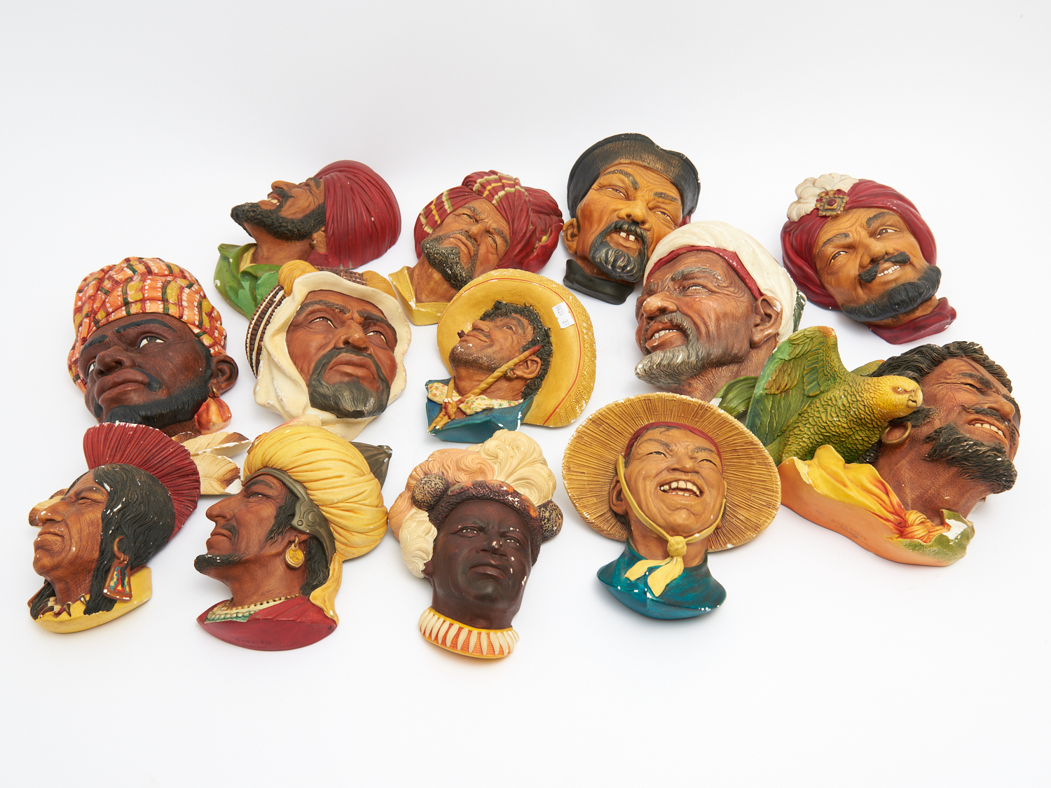 A LARGE COLLECTION OF ETHNIC PORTRAIT PLAQUES H.22CM (TALLEST), LEONARD JOEL DELIVERY SIZE: LARGE