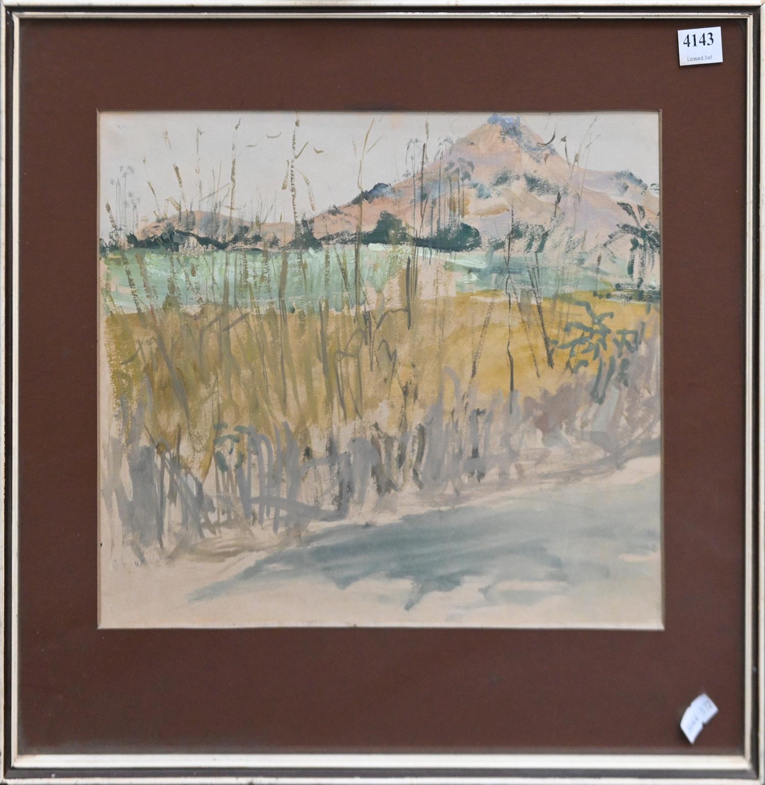 PHYL WATERHOUSE, LANDSCAPE, WATERCOLOUR AND GOUACHE ON PAPER, SIGNED LOWER LEFT, 25 X 33CM, FRAME SIZE: 38 X 44CM
