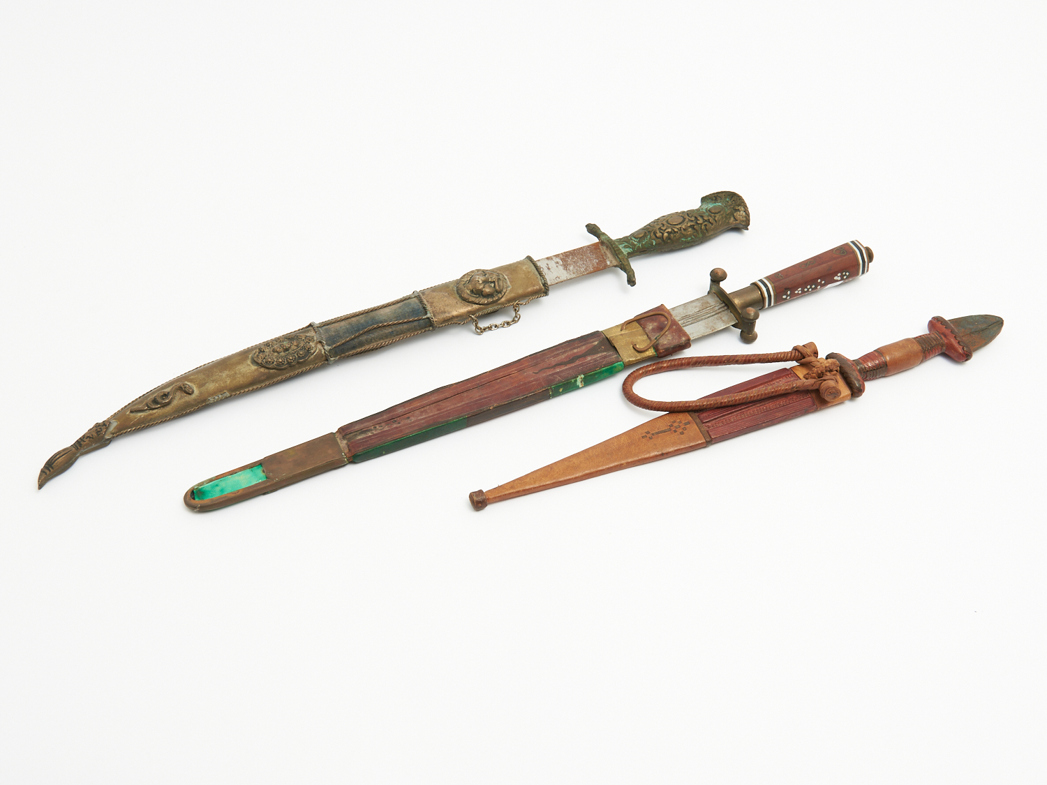 THREE DAGGERS L.44CM (LONGEST) *Please note the purchaser of this item will require a weapons licence and a copy will be taken upon collection LEONARD JOEL DELIVERY SIZE: MEDIUM
