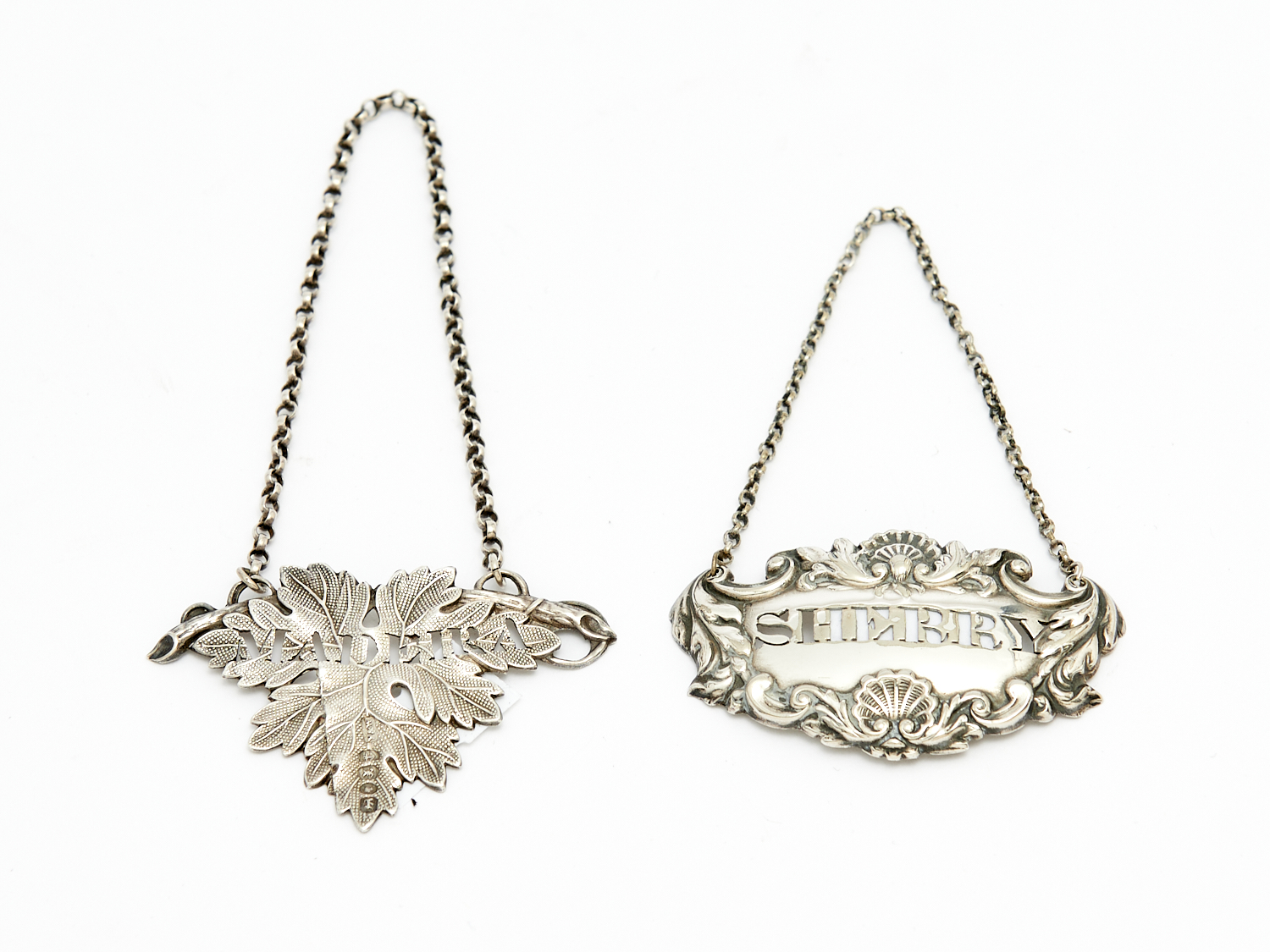 TWO VICTORIAN STERLING SILVER BOTTLE TAGS 18G, LEONARD JOEL DELIVERY SIZE: SMALL