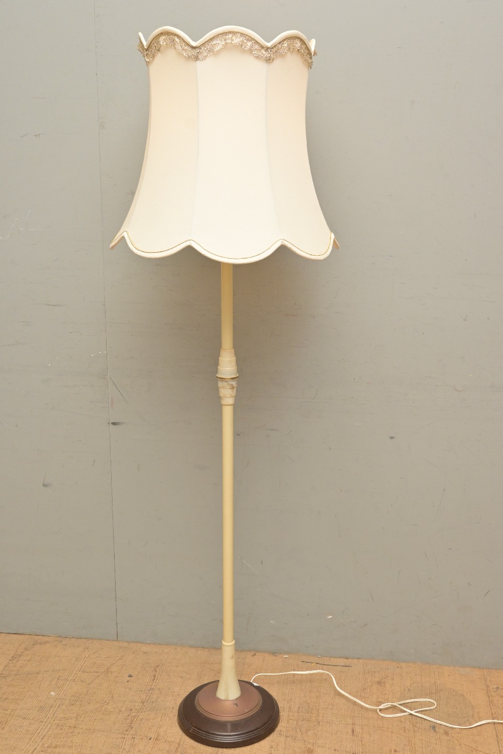 A 1920S AUSTRALIAN BAKELITE BASED AND BAKELITE SHAFT STANDARD LAMP WITH ORIGINAL SHADE (160H X 49D CM) (LEONARD JOEL DELIVERY SIZE: LARGE)