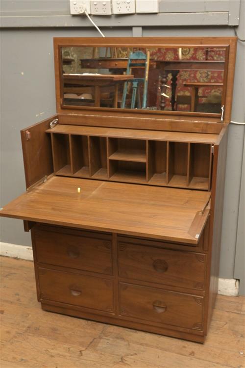 A CONTEMPORARY CHINESE STYLE LIFT-TOP DROP-FRONT BUREAU (A/F) (111H X 98W X 44D CM) (PLEASE NOTE THIS HEAVY ITEM MUST BE REMOVED BY CARRIERS AT THE CUSTOMER'S EXPENSE. LEONARD JOEL STAFF CANNOT ASSIST CARRYING THIS ITEM) (LARGE ITEM)