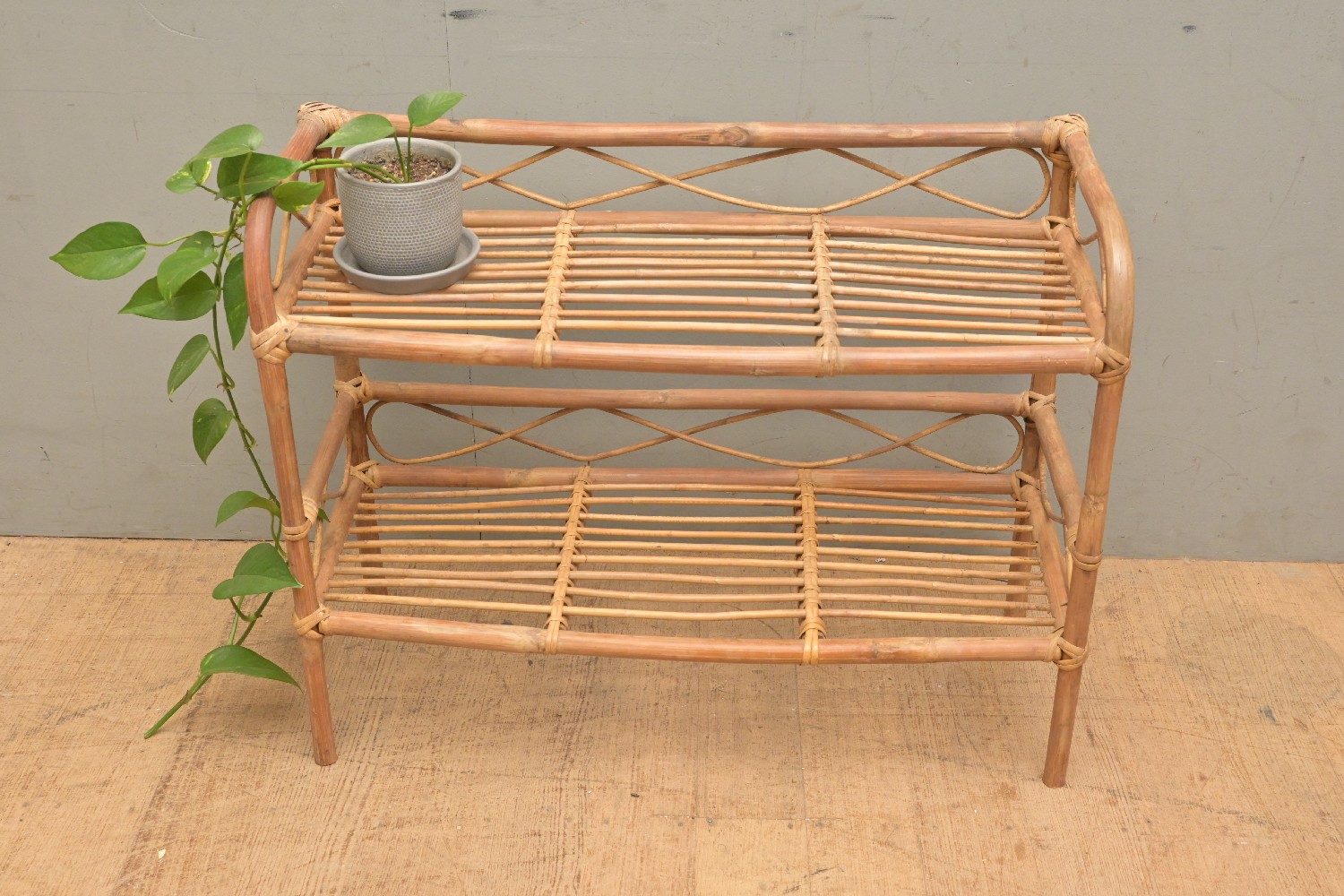 A CANE SHOE STAND (58H X 78W X 30D CM) (LEONARD JOEL DELIVERY SIZE: LARGE)