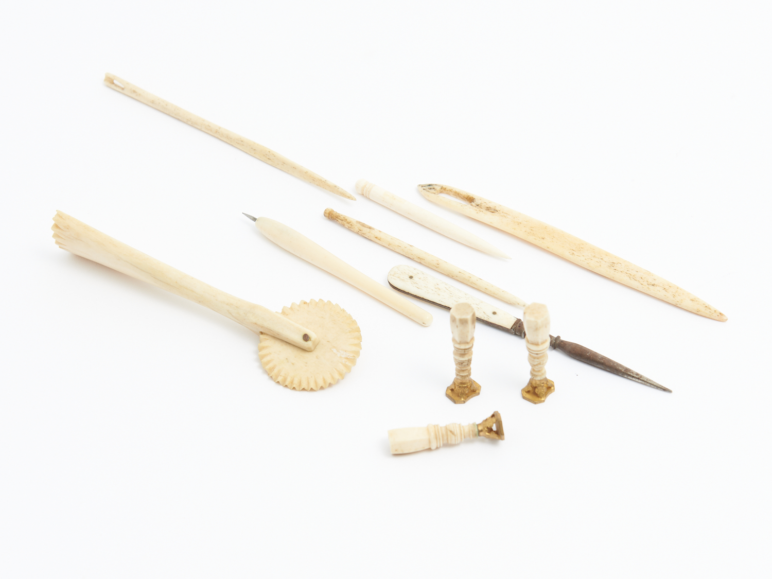 A GROUP OF CARVED BONE IMPLEMENTS L.14.5CM (LONGEST), LEONARD JOEL DELIVERY SIZE: SMALL
