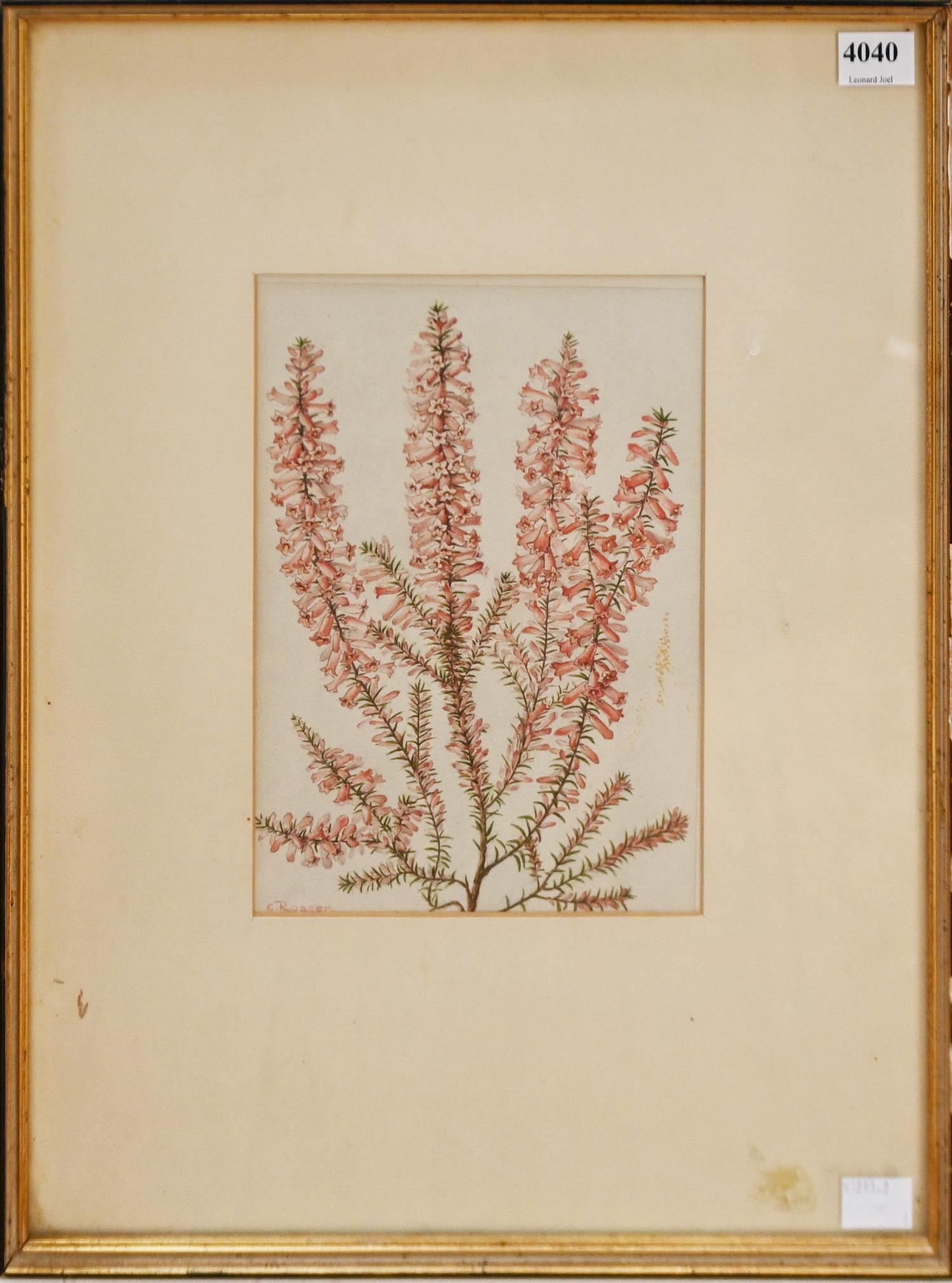 CELIA ROSSER, COMMON HEATH ESPAERIS IMPRESSA, WATERCOLOUR, SIGNED LOWER LEFT, TITLED ON LABEL AFIXED VERSO, 21 X 15CM, FRAME SIZE: 41 X 31CM
