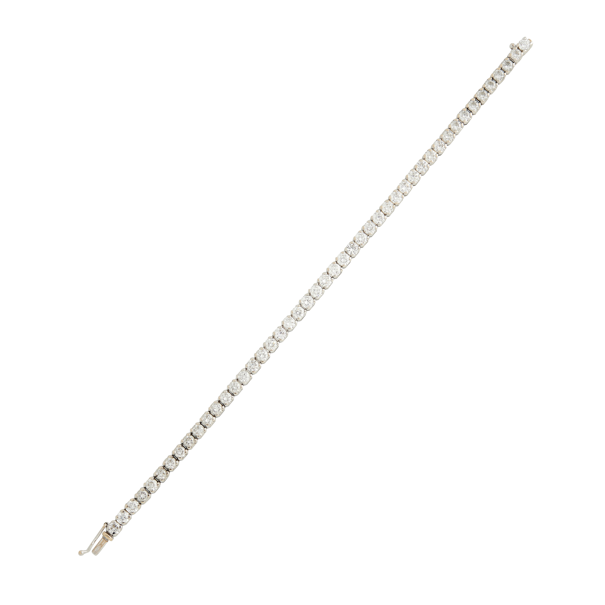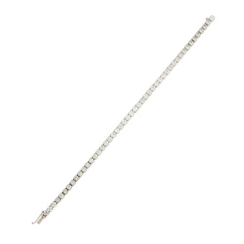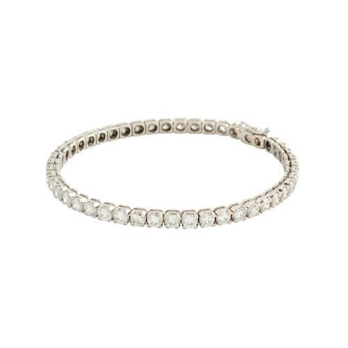 Designed as a continuous line of claw-set brilliant-cut diamonds together weighing approximately 6.50 carats, completed by a tongue and groove clasp, length 180mm, gross weight 12.9 grams.