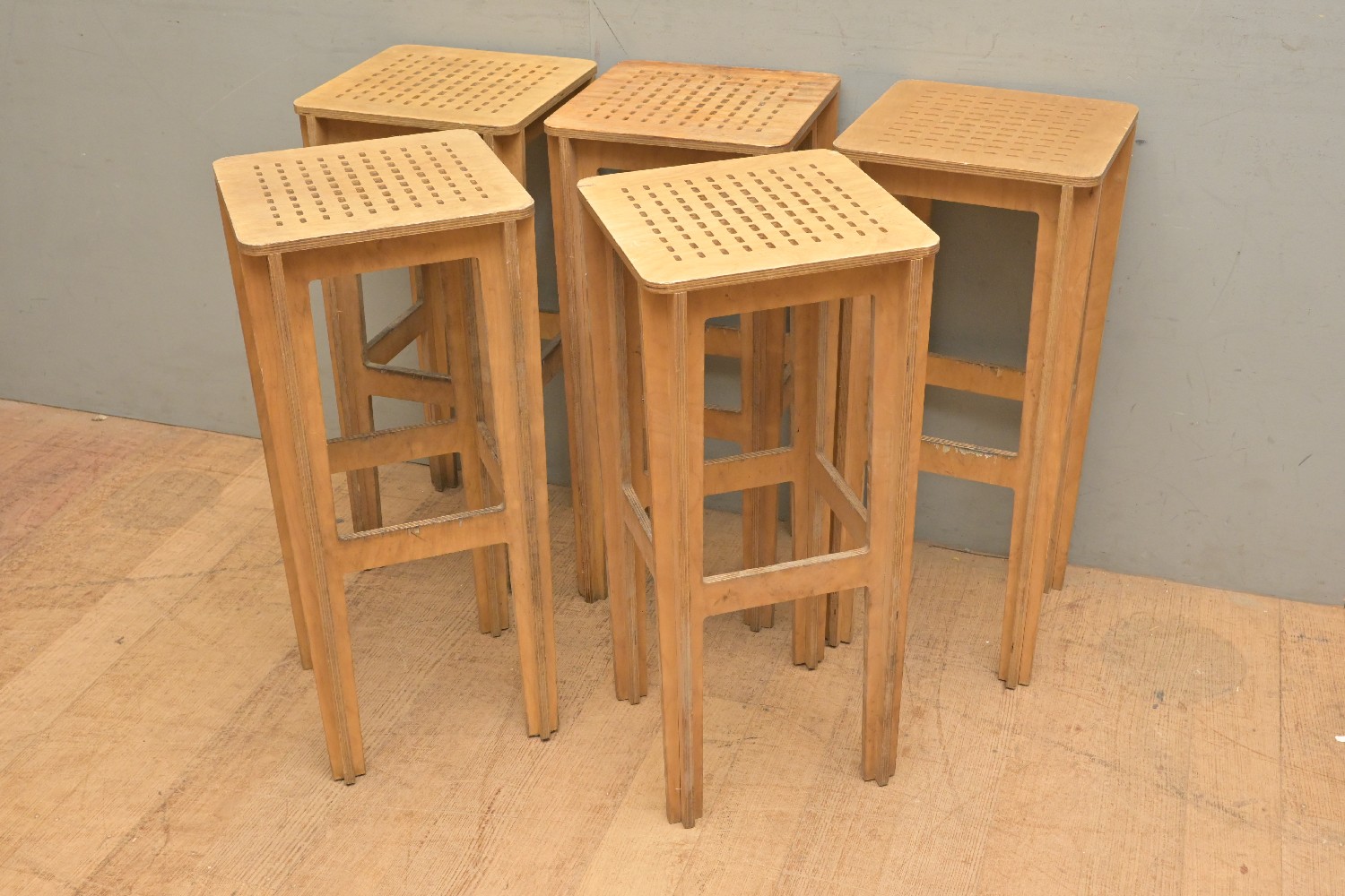 A SET OF FIVE PEREFRATED PLY FORM STOOLS (A/F) (71H X 31W X 31D CM) (LEONARD JOEL DELIVERY SIZE: X-LARGE)