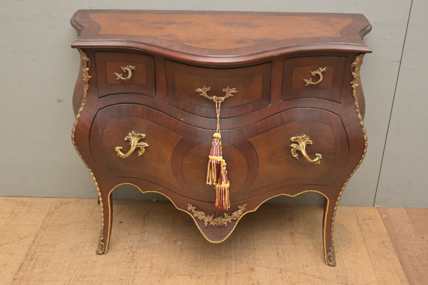 A LOUIS XV STYLE BOMBE COMMODE (A/F) (83H X 102W X 50D CM) (LEONARD JOEL DELIVERY SIZE: X-LARGE)