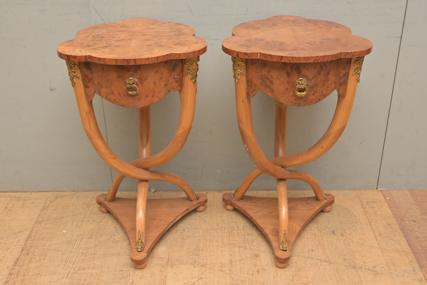 A PAIR OF LOUIS XV STYLE CROSS BASED SIDE TABLES (A/F) (74H X 45W X 45D CM) (LEONARD JOEL DELIVERY SIZE: LARGE)