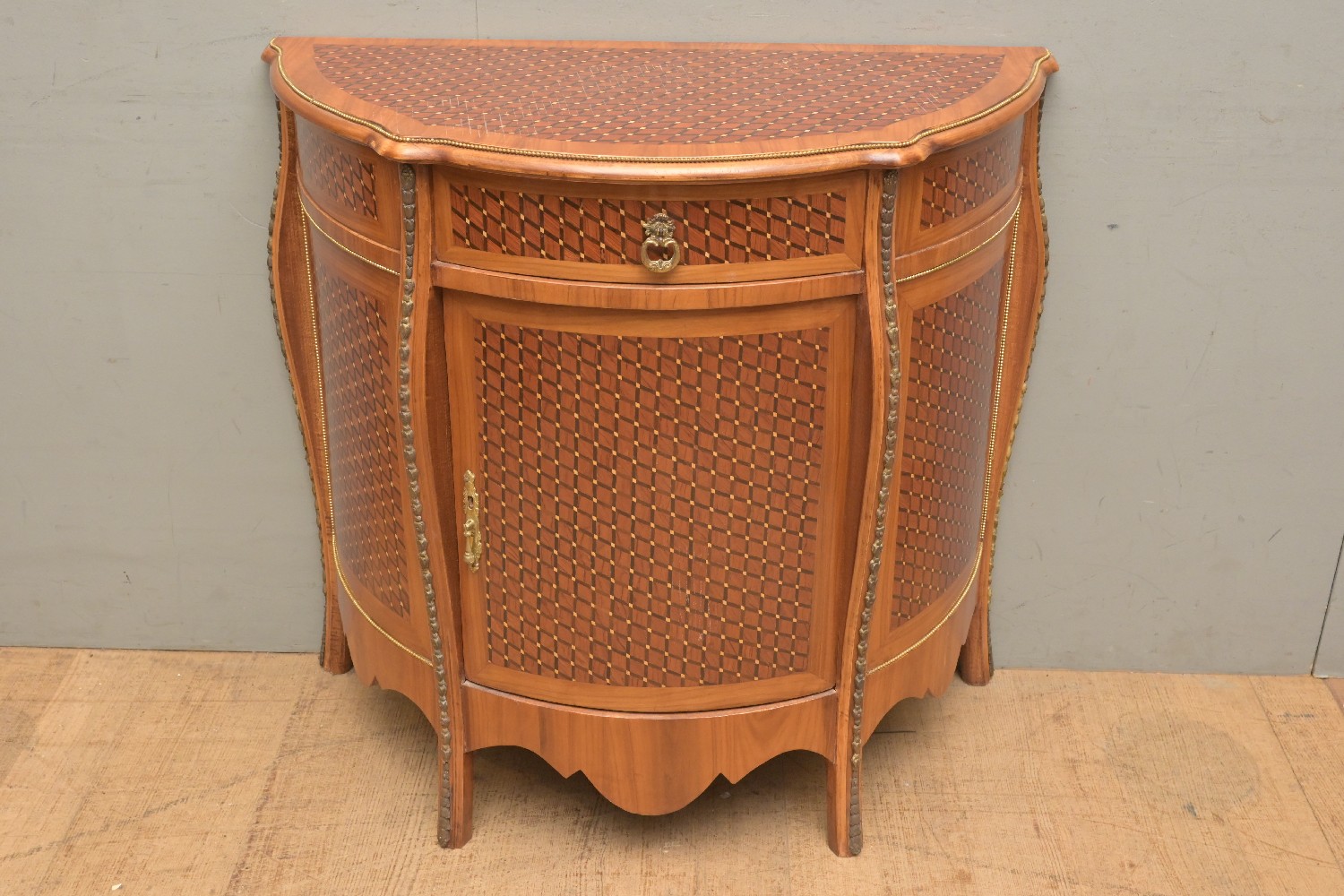 A LOUIS XVI STYLE INLAID CABINET (A/F) (86H X 89W X 44D CM) (LEONARD JOEL DELIVERY SIZE: X-LARGE)