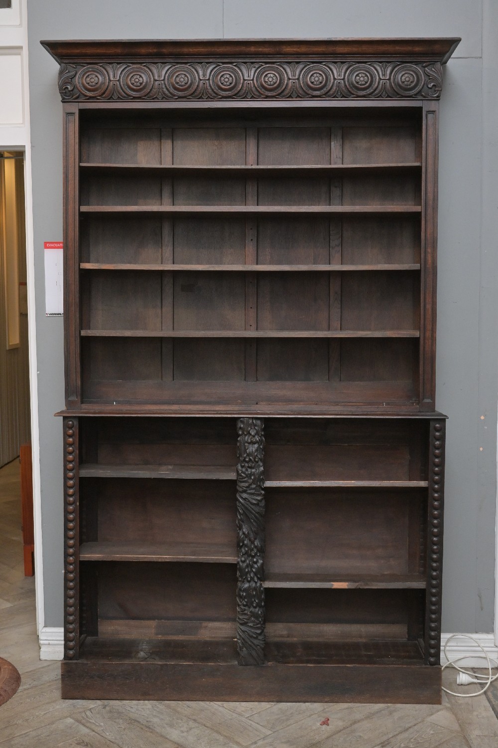 A LATE 19th CENTURY FRENCH OAK OPEN BOOK-CASE (A/F) (242H X 146W X 31D CM) (PLEASE NOTE THIS HEAVY ITEM MUST BE REMOVED BY CARRIERS AT THE CUSTOMER'S EXPENSE. LEONARD JOEL STAFF CANNOT ASSIST CARRYING THIS ITEM) (LARGE ITEM)