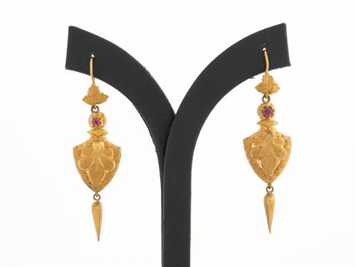 A PAIR OF GEM-SET REPOUSSE EARRINGS IN 20CT GOLD TO SHEPARD HOOK FITTINGS, 45MM, 2.2GMS