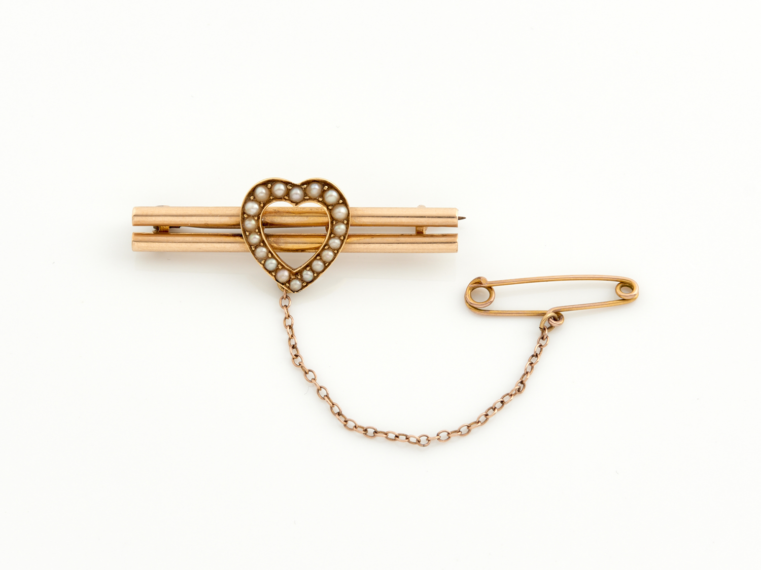 A SEED PEARL BAR BROOCH IN 9CT GOLD, 38MM, 3.4GMS