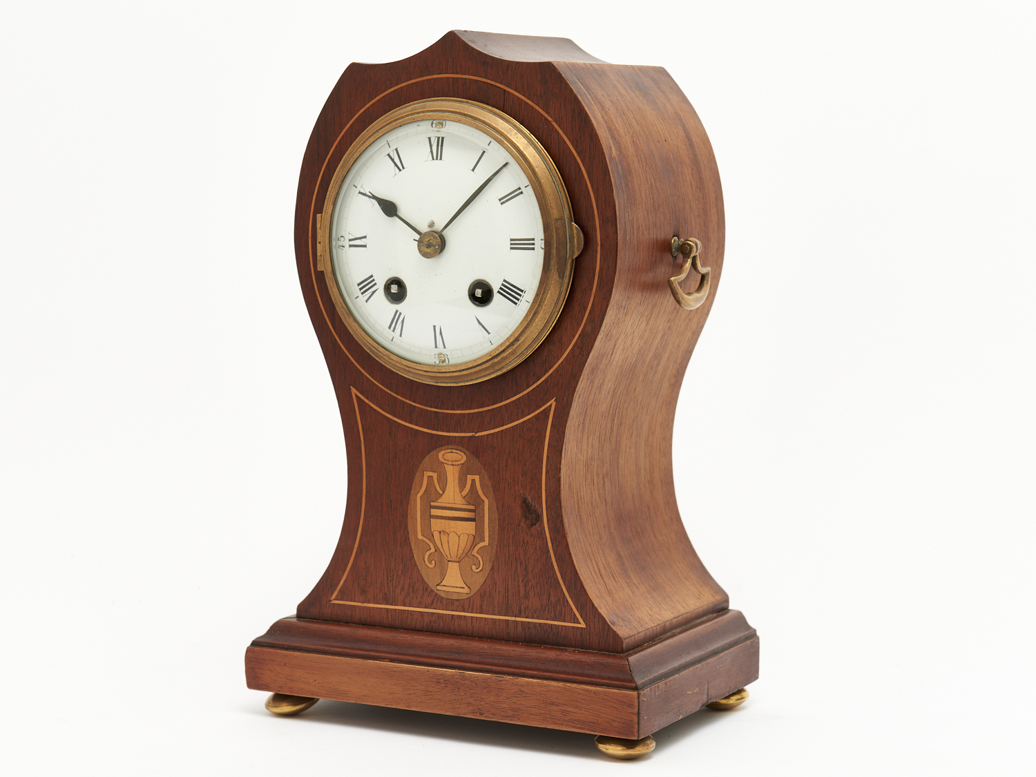 A MAHOGANY CASED STRIKING BALLOON SHAPED CLOCK WITH EIGHT DAY EVENT (A/F), H.31CM, LEONARD JOEL DELIVERY SIZE: MEDIUM