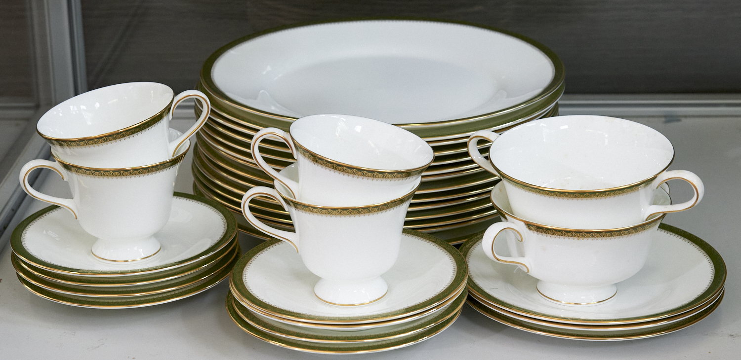 A PART WEDGWOOD CHESTER PATTERN DINNER SERVICE DIA.27.5CM (LARGEST), LEONARD JOEL DELIVERY SIZE: MEDIUM